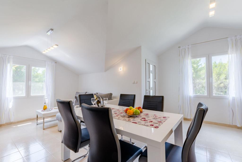 Los apartamentos Rusula constan de dos alojamientos de 58 m2 cada uno, uno en la planta baja y otro en el piso de una casa independiente, en un hermoso entorno mediterráneo, en una zona tranquila de la bahía de Osibova, en la costa sur de la isla de Brač. La casa está a 200 metros del mar. Ambos apartamentos tienen aire acondicionado y los huéspedes tienen TV vía satélite, conexión inalámbrica a internet gratuita y aparcamiento. Dentro del apartamento hay un jardín con un jardín y un porche cubierto con zona de comedor, barbacoa y el equipo. Los huéspedes también pueden usar una ducha al aire libre con agua fría y caliente. En el centro de Milna, a 2 km, hay tiendas de comestibles, restaurantes, pizzerías y cafeterías. El apartamento de la planta baja consta de dos dormitorios, una sala de estar con un sofá doble que se puede doblar en una cama doble, una cocina y un baño. El apartamento de la planta baja tiene un dormitorio, amplia sala de estar, cocina y baño