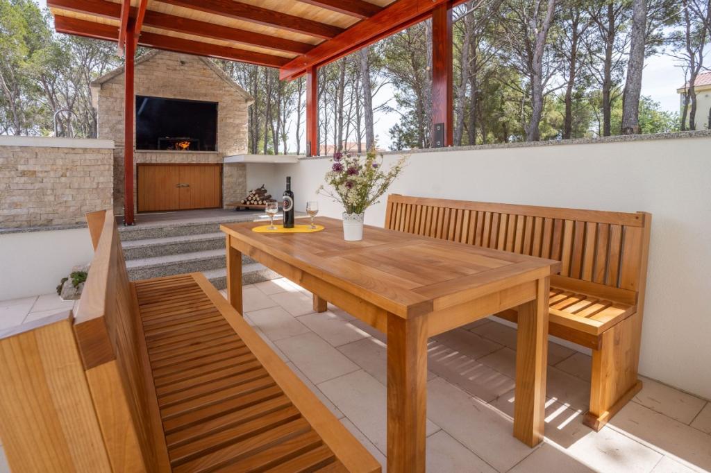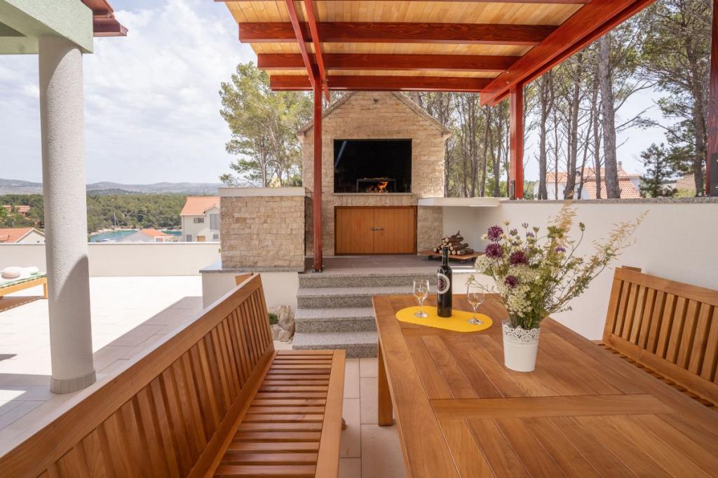 Villa Kalinić consta de dos apartamentos. Uno se llama Cerezo porque el 80% de los muebles son de madera de Cerezo, y el otro se llama Apartamento Nogal, porque está hecho de madera de Nogal. Cada mueble es auténtico y hecho a mano por el anfitrión, quien es un Muy buen carpintero y experimentado. Ambos apartamentos tienen un dormitorio con una cama king-size y un gran armario en el que cabe todo tu armario. También tiene un baño que tiene una gran cabina de ducha y una lavadora. Ambos apartamentos tienen una cocina bastante grande. cocina que tiene todo el menaje necesario para cocinar que es nueva.el salón consta de un cómodo sofá para ver la televisión, que también sirve como cama supletoria.En el exterior el apartamento es muy espacioso para comer o tomar una copa en tumbonas de madera.