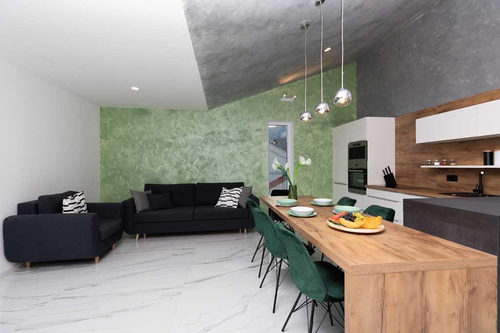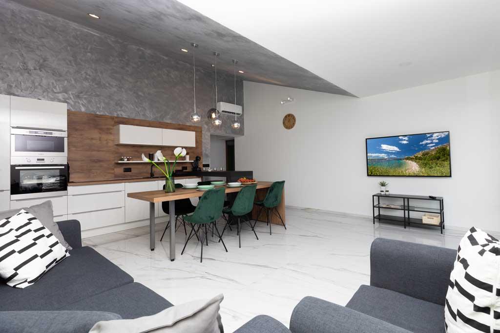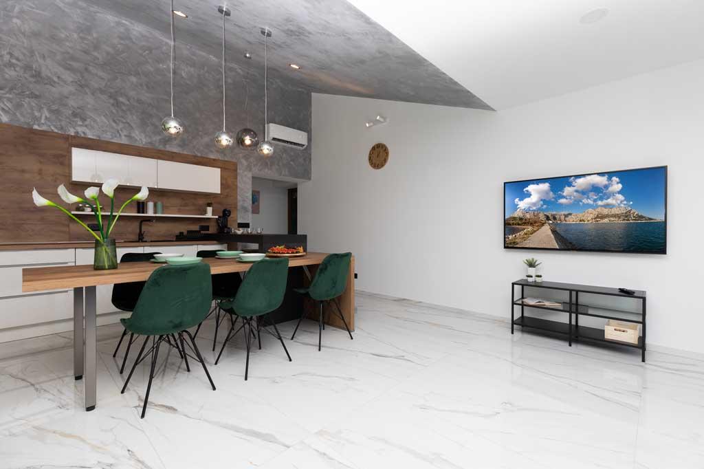 Hay un gran supermercado y una oficina de correos a solo 700 my la ciudad más cercana de Omis está a 10 km. La ciudad de Split está a 30 km.