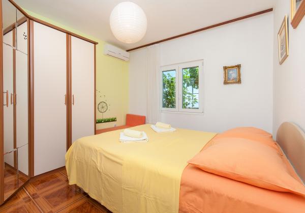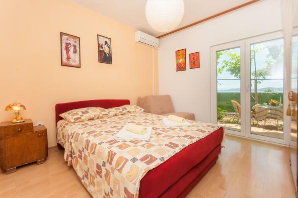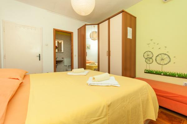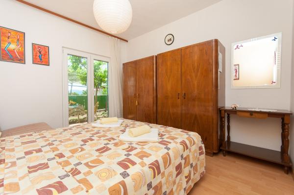 Los apartamentos están situados en un pueblo pequeño y tranquilo, ideal para vacaciones familiares y recuerdos inolvidables. Los apartamentos están situados en el lado sur de la casa y tienen vistas al mar. Distancia desde el mar y la playa está a 200 m. El primer apartamento 4 2 consta de un aseo, una cocina y dos dormitorios, ambos equipados con aire acondicionado. La cocina se encuentra en frente de la casa para no calentar la zona en la que reside. Otro apartamento de 2 1 consta de una habitación con aire acondicionado, cuarto de baño y cocina, que también se encuentra en frente de la casa. En el lado sur de la casa es un gran jardín, bajo la pérgola que forma una sombra natural, con la posibilidad de barbacoa. Aparcamiento gratuito disponible en el sitio. La entrada es común. Las habitaciones están situadas en el lado sur de la casa, un aseo para el apartamento 4 2 está situado al otro lado de la habitación en el pasillo. Wi-Fi está disponible en toda la propiedad.