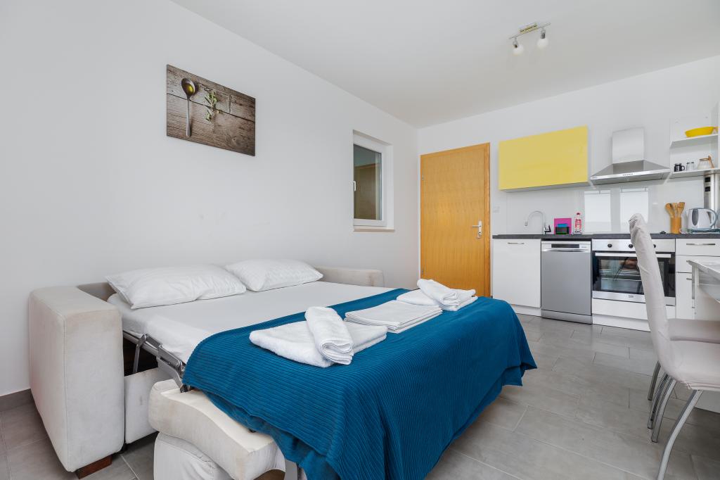 Quiero elogiar el alojamiento, Apartamentos Bosiljka, porque el anfitrión es genial y el alojamiento está impecable y limpio. La playa está a poca distancia a pie y el mar es perfecto. Ideal para familias con niños, sin el bullicio. Hacía mucho tiempo que no conocíamos a un anfitrión más atento que Frane.