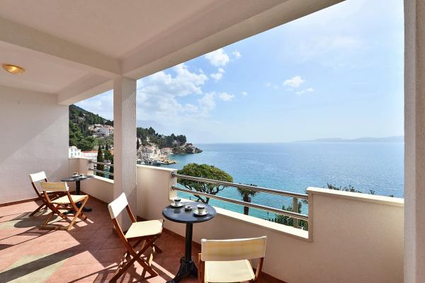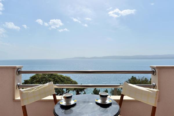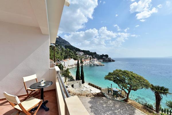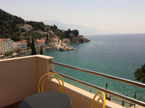 Totalmente equipado y modernos apartamentos en una excelente ubicación a sólo 20 metros de la playa. Apartamentos con una magnífica vista del puerto Mimica. El estacionamiento.