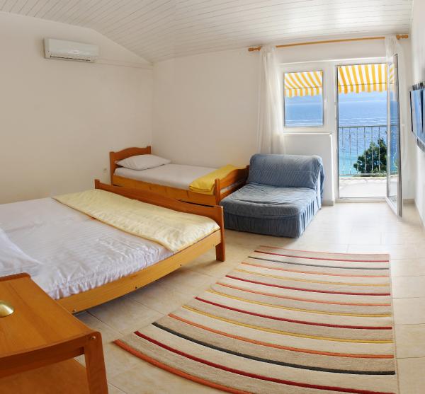 Los apartamentos están situados en una tranquila bahía, a 30 metros de la playa. La playa es genial, grava, adecuado para niños pequeños.