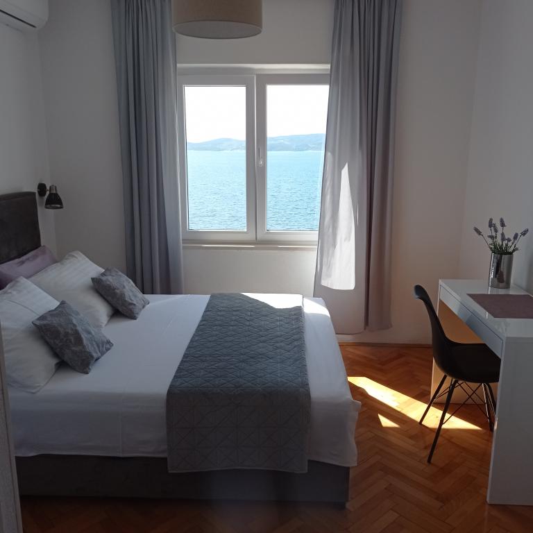 Hemos estado aquí dos veces, el alojamiento es precioso, limpio, totalmente equipado con aire acondicionado en cada habitación, lavavajillas y lo que más agradezco es la lavadora. Mirko, Danijela y su madre son personas maravillosas, amables, siempre sonrientes y serviciales. La vista desde la terraza es irremplazable. No tengo nada que criticar. El beneficio es que volverás con una figura tonificada, porque el camino desde la playa es bastante accidentado, pero creo que eso también es un beneficio.