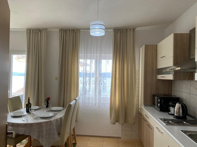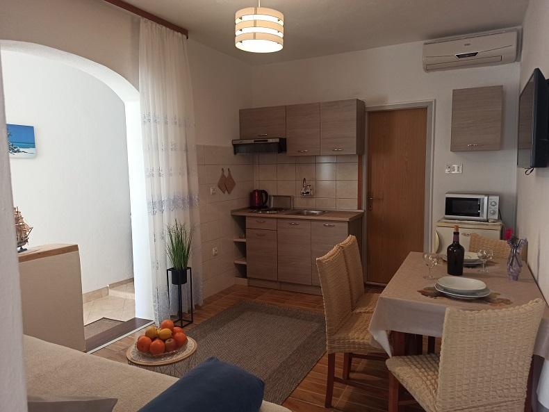 Apartamentos confortables, con mobiliario moderno y vistas al mar. Ofrecemos los siguientes apartamentos: Apartamento A4: dos dormitorios, con mobiliario moderno, lavadora, dos aires acondicionados y preciosas vistas al mar (en la segunda planta). Apartamento A2+2 (planta baja): recién amueblado, con un dormitorio y sofá cama en la cocina, también con preciosas vistas al mar y una amplia terraza, ideal para cuatro personas. Apartamentos A2 (planta baja y primera planta): cómodos para dos personas y con vistas al mar. Cerca de las ciudades de Omiš (11 km), Split (36 km), Makarska (23 km), Brela y Baška Voda (13 km), todas a poca distancia. Disfrute de momentos inolvidables con una barbacoa donde podrá preparar deliciosas comidas para su familia. El aparcamiento está situado frente al edificio para todos los huéspedes. Estamos a su disposición para cualquier consulta.