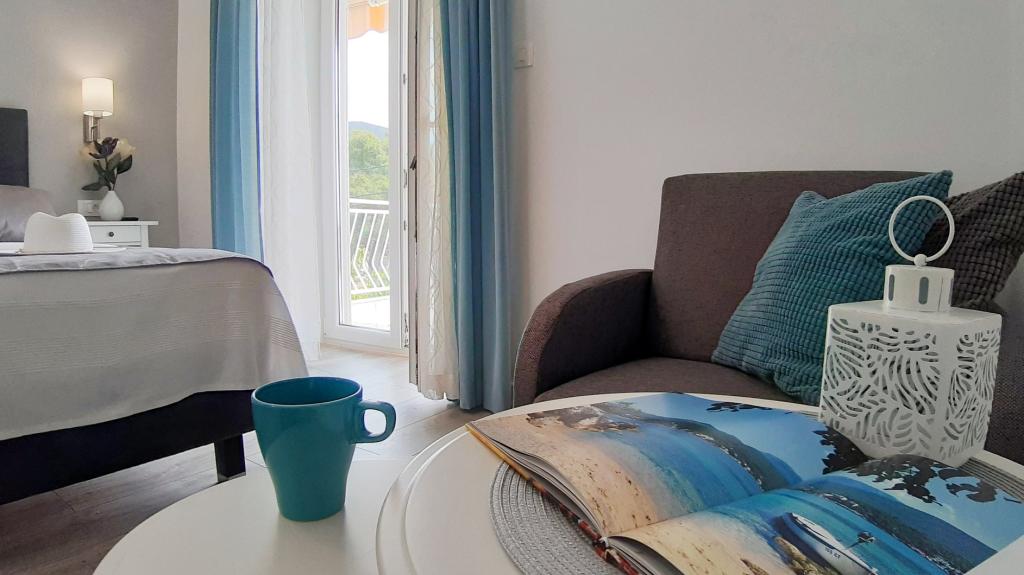 Comenzaré con los anfitriones, porque son maravillosos. Karmen y toda la familia harán que tus vacaciones sean sumamente placenteras. Están ahí para cada pregunta y cada tipo de ayuda. Nos recibió un apartamento limpio y ordenado, bellamente diseñado, totalmente equipado con todo lo necesario en la cocina y el baño. Las toallas y los paños se cambian periódicamente, cada dos días. También elaboran aceite de oliva fino, que se puede comprar en el edificio. El apartamento está perfectamente ubicado, con su propia pequeña playa de piedra donde hay sombra por la tarde. Puedes pasar frío todo el día si te colocas debajo de un árbol. Podríamos usar la barbacoa en la playa en cualquier momento, está disponible para los huéspedes. El restaurante más cercano está a 3 pasos de la propiedad y tiene buena cocina, con precios estándar para la costa croata. Una tienda más pequeña está a 3 minutos a pie, pero está bien equipada. También hay una playa de arena más pequeña cerca de la tienda, y una más grande está a unos 10 minutos a pie. Todo el pueblo es hermoso y tranquilo, ideal para unas vacaciones tranquilas.
