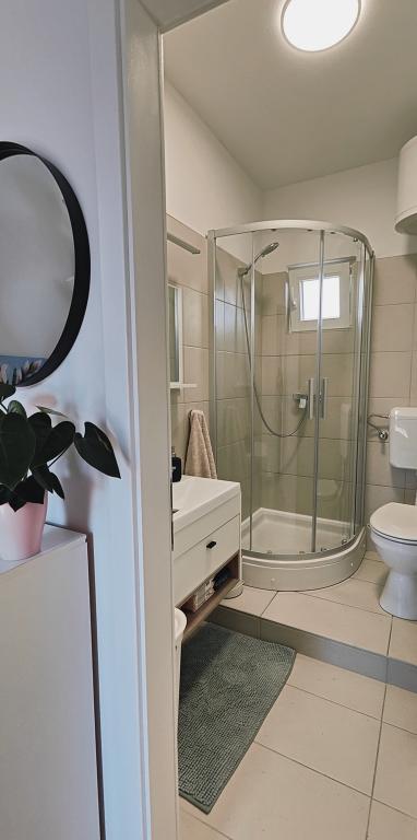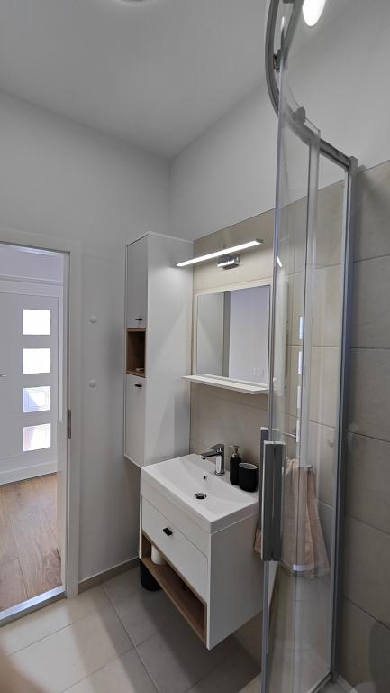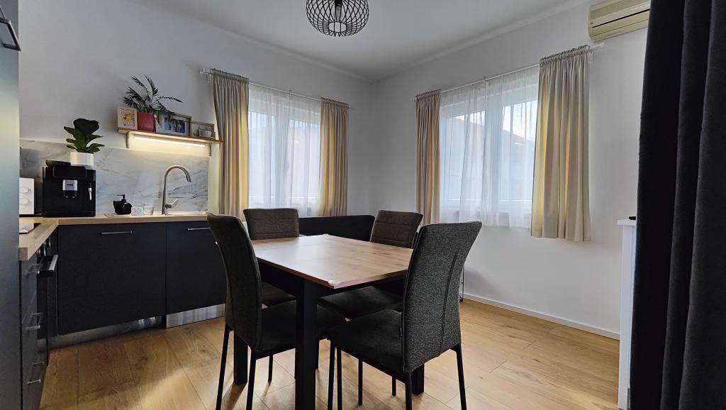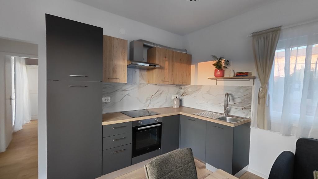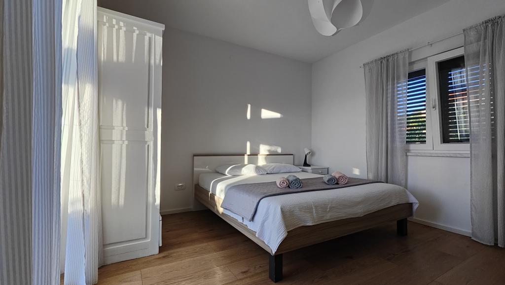 Apartamento completamente renovado en un entorno privado, con una amplia terraza y vistas al mar, a 300 m de la playa de arena de Slanica. Los huéspedes tienen acceso a una barbacoa y un espacio para socializar en el patio, así como a una plaza de aparcamiento vigilada. El apartamento cuenta con un amplio dormitorio independiente. La cocina está totalmente equipada con cafetera, lavavajillas, nevera grande con congelador y lavadora.