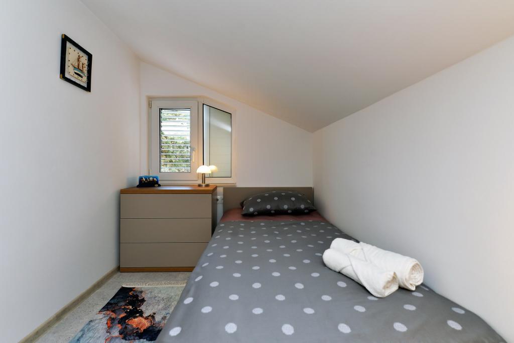 Departamento de dos ambientes recién decorado de 43,55 m2. Dispone de una habitación doble (dos camas de 200x90cm), una individual (de dimensiones 200x160cm) y un sofá cama en el salón. Está equipado con todos los electrodomésticos, Android TV, internet/wifi, aire acondicionado, aparcamiento seguro bajo videovigilancia. Está ubicado en el segundo piso de un edificio residencial, que se encuentra en primera fila del mar, más precisamente en la playa de arena de Slanica. Consta de pasillo, 2 dormitorios, baño, cocina/comedor/sala de estar con vistas al mar y al Parque Nacional de Kornati. Cerca hay una tienda, varios servicios de restauración, un gran tobogán, un parque infantil y pistas de tenis. La playa también es apta para los más pequeños porque tiene una gran parte de arena poco profunda y a sólo 100 metros hay muchos lugares bajo los pinos para una entrada un poco más profunda al mar. Hay un paseo marítimo hasta el centro de Murter. Es importante destacar que en esta playa no se realizan eventos musicales nocturnos, sino exclusivamente eventos diurnos y de catering.