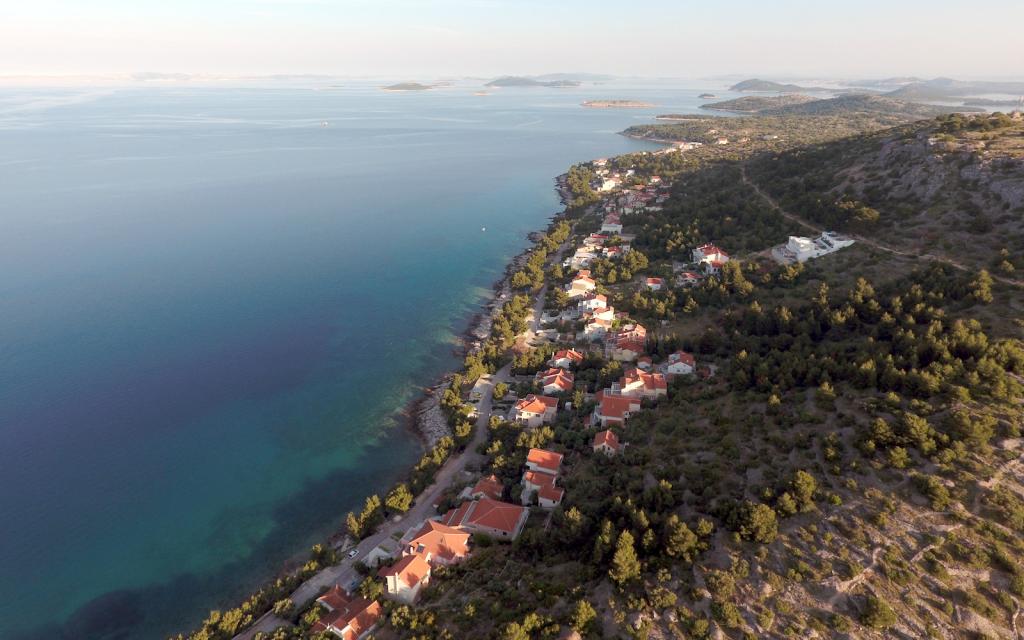 El apartamento G1 está situado en la parte superior de la casa superior, en el lado oeste. Tiene una superficie de 50 m2 con otros 20 m2 de terraza. Está pensado para una estancia confortable de 2 a 3 personas con una gran terraza y una vista panorámica de Kornati y el mar abierto entre Kornati y Murter. El apartamento tiene un dormitorio y un baño con aseo, y una gran zona común visualmente completamente abierta a la terraza y a la vista panorámica del mar. En este espacio común hay una cocina con comedor y sala de estar. El apartamento está equipado con potente aire acondicionado, internet WiFi, programas satelitales y servicio de streaming (netflix). Al lado del apartamento hay disponible una plaza de aparcamiento y una zona de sombra junto a la playa con tumbonas.
