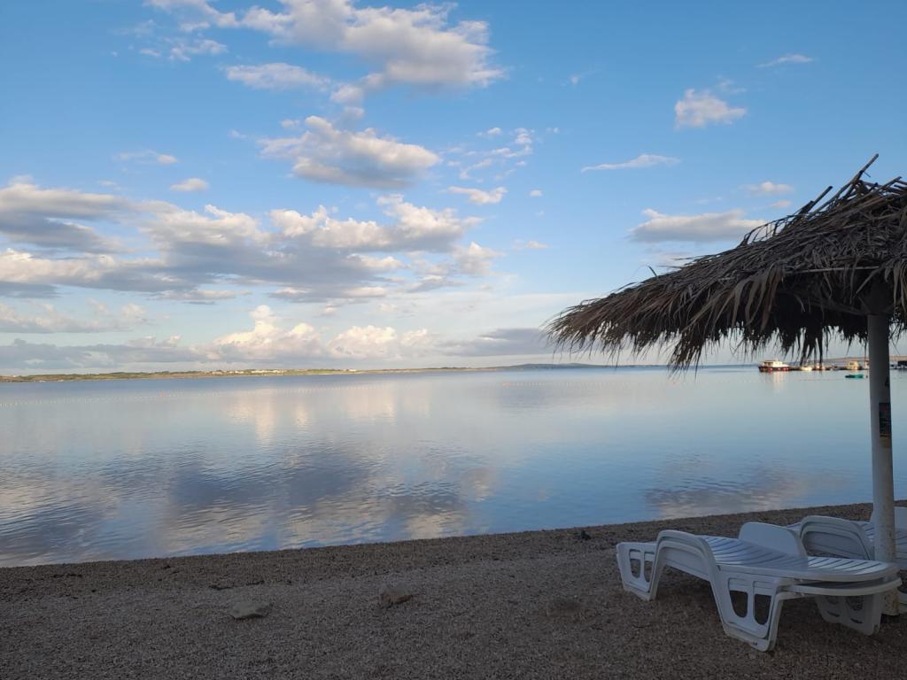 El apartamento "Idi pa Vidi" se encuentra en Vrsi, cerca de Nin (a 4 km), a 23 km de Zadar. Desde Zagreb, a 2,5 horas en coche. Ofrecemos 2 apartamentos con entradas independientes. El municipio de Vrsi cuenta con 14 playas, y la playa más cercana está a 320 m del apartamento. Las playas de Vrsi son principalmente de arena y guijarros (la más famosa está cerca de Ričin). A poca distancia a pie hay un supermercado, un mercado, una panadería, restaurantes, una carnicería y un parque de atracciones. La casa se encuentra en una calle sin salida, con un patio ajardinado y césped, y dispone de ducha exterior y barbacoa. El apartamento, en la primera planta, cuenta con salón con terraza y vistas al mar, y está dividido en dos plantas. El primer nivel tiene 2 dormitorios (uno de ellos con cama de matrimonio y el segundo dormitorio con balcón tiene una litera (con 2 camas) y un baño, mientras que el 3er dormitorio (que también tiene un aseo) se encuentra en la galería del apartamento. El apartamento puede alojar un máximo de 7 personas.