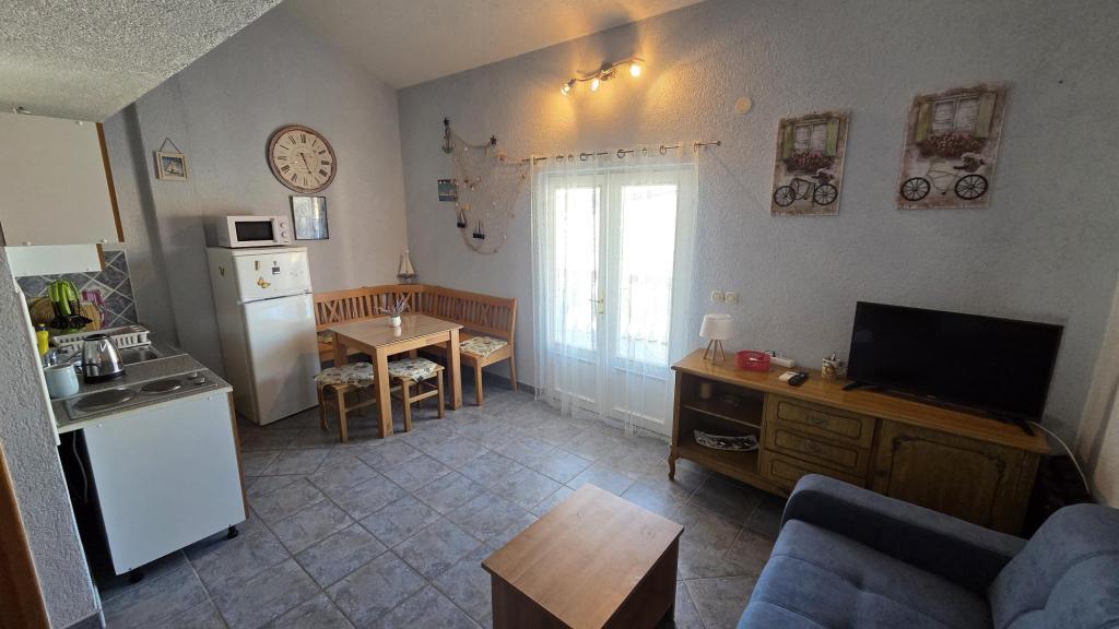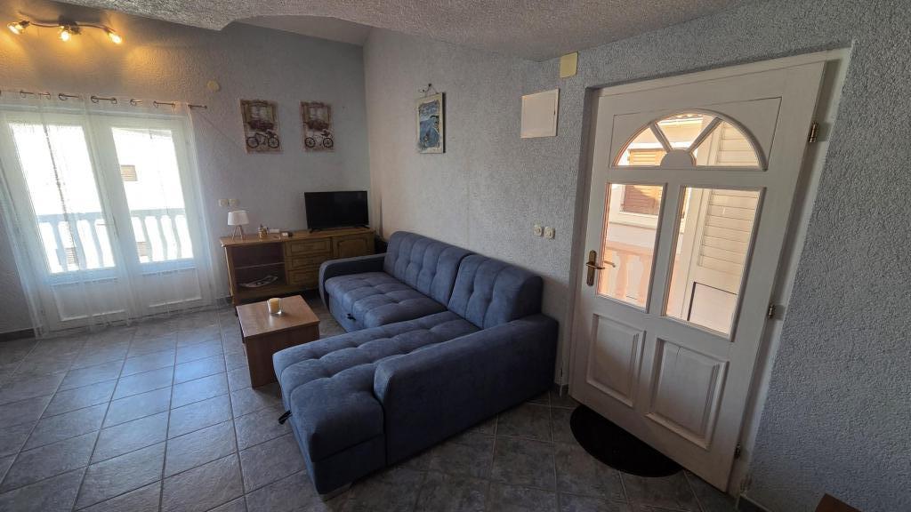 El apartamento consta de dos habitaciones: una con cama de matrimonio y la otra con dos camas individuales. También dispone de baño, salón con cocina integrada y una amplia terraza. Hay aparcamiento junto al apartamento. Cuenta con barbacoa, aire acondicionado y wifi. Se encuentra a 5 minutos a pie del mar y a 10 minutos a pie del centro y las tiendas. Hay un precioso y extenso pinar en las inmediaciones. Un entorno tranquilo y apacible.