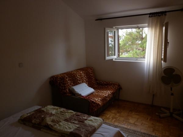 Agradables apartamentos en una casa con un gran patio con sombra, algo fuera de la ciudad de Nin. La casa se encuentra a 300 metros del mar, a 700 m de la playa ya 10 minutos a pie del centro. Hay aparcamiento, cada apartamento cuenta con una terraza, mientras que los usuarios de habitaciones con baño podría utilizar una tabla en la logia o en el patio.