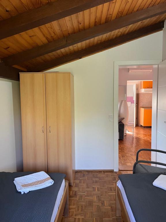 Muy buen alojamiento. Los propietarios tienen incluso un mayor apartamento de un dormitorio 3mi / celkemn 7 camas / vistas al mar y una terraza cubierta grande en la 1 ª planta / planta baja viven. Así hemos vivido. Son muy útiles. La playa está cruzando la calle, se encuentran en la baja las escaleras. ¿Es la comida y 3 lanchas de pedales para alquilar. La ventaja es también parte con sombra natural. Es de arena, ideal para niños pequeños, pero en una buena penetraciones del mar y los adultos. Por supuesto, atrae a las familias con niños, es de esperar. La Nina, que era de aproximadamente 1 km, el chodilko una carretera normal, era quizás el único inconveniente.