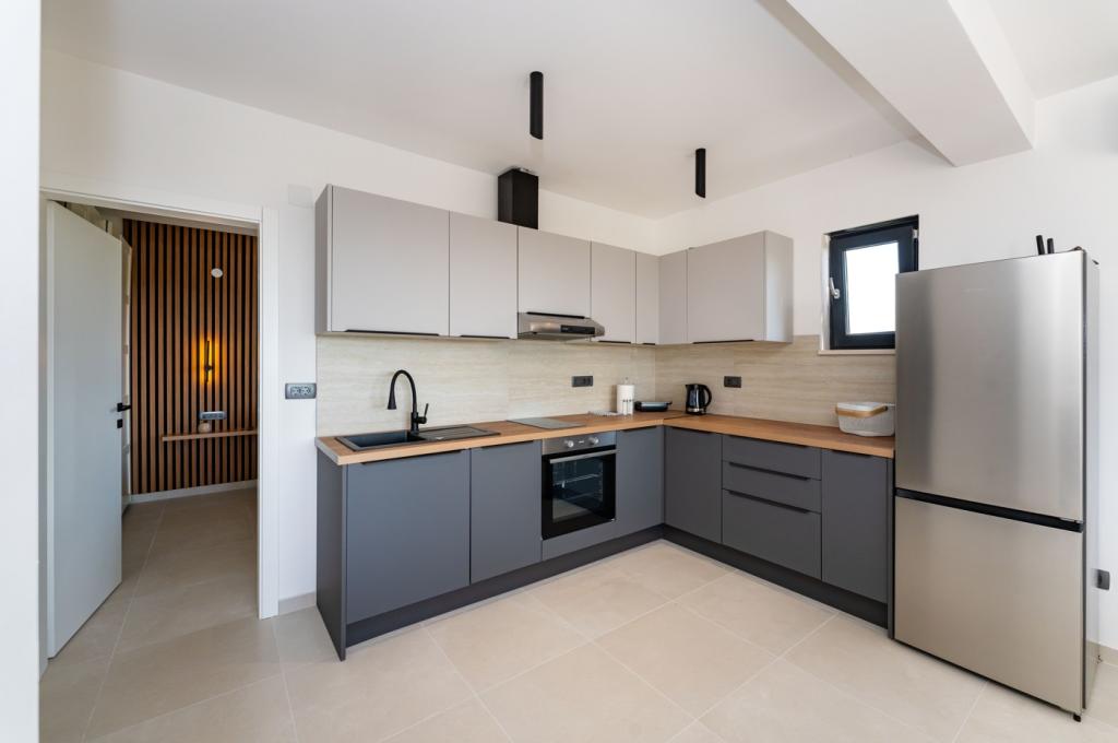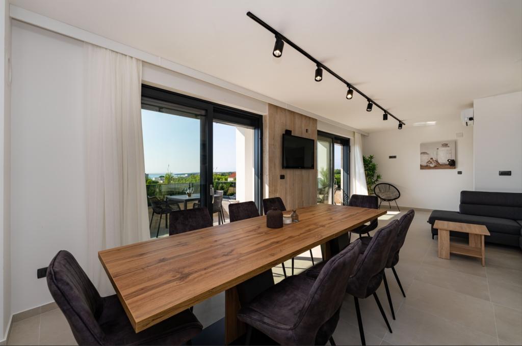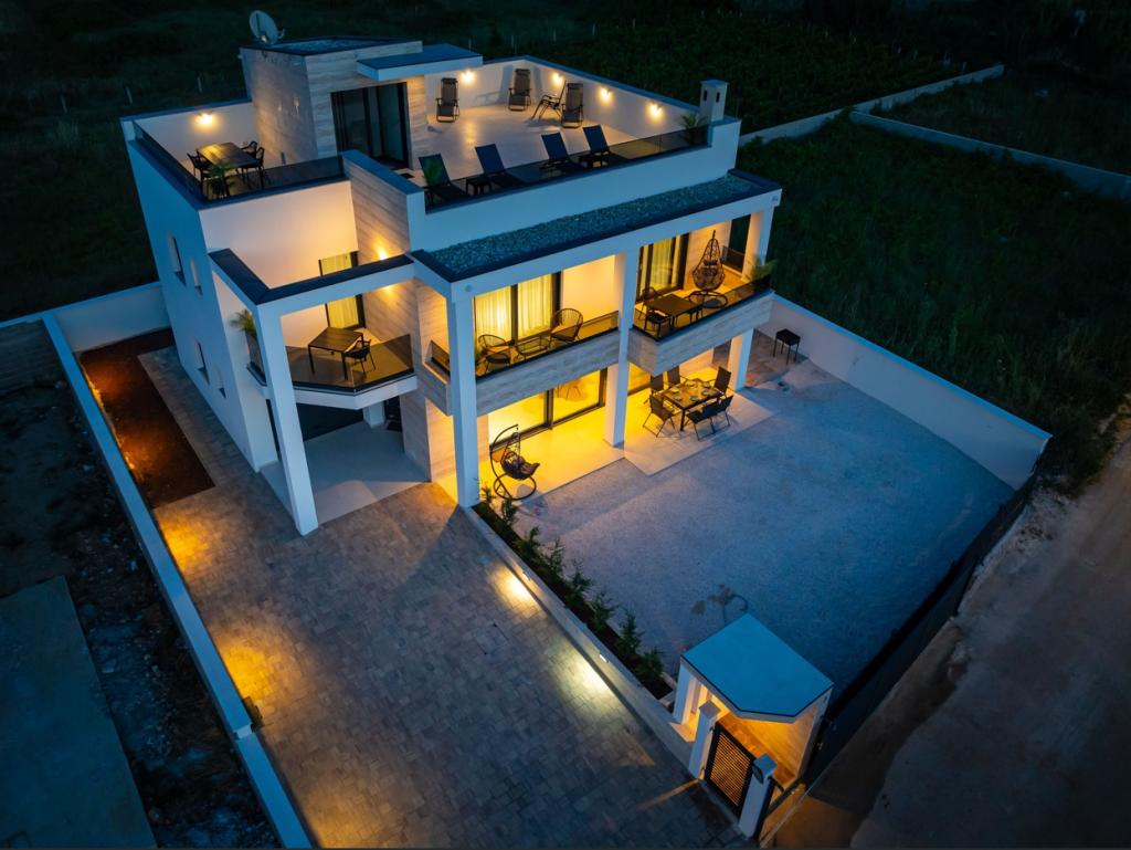 Villa LaMag, una moderna villa de nueva construcción, se encuentra en el precioso y tranquilo pueblo de Vrsi Zukve, a 20 km de Zadar, a 5 km de la ciudad real de Nin y a unas 2,5 horas en coche de Zagreb. La playa está a solo 3 minutos a pie, el restaurante más cercano a 400 metros y el supermercado a menos de un kilómetro. Explore las hermosas playas de arena de Nina y Ljubača (a 10 minutos en coche) o visite las cercanas islas de Pag y Vir, conectadas por un puente. El encanto histórico del casco antiguo de Zadar, con sus calles estrechas y joyas culturales, está a solo 25 minutos en coche. Esto convierte a su apartamento en el punto de partida perfecto para descubrir las maravillas de esta increíble región costera.