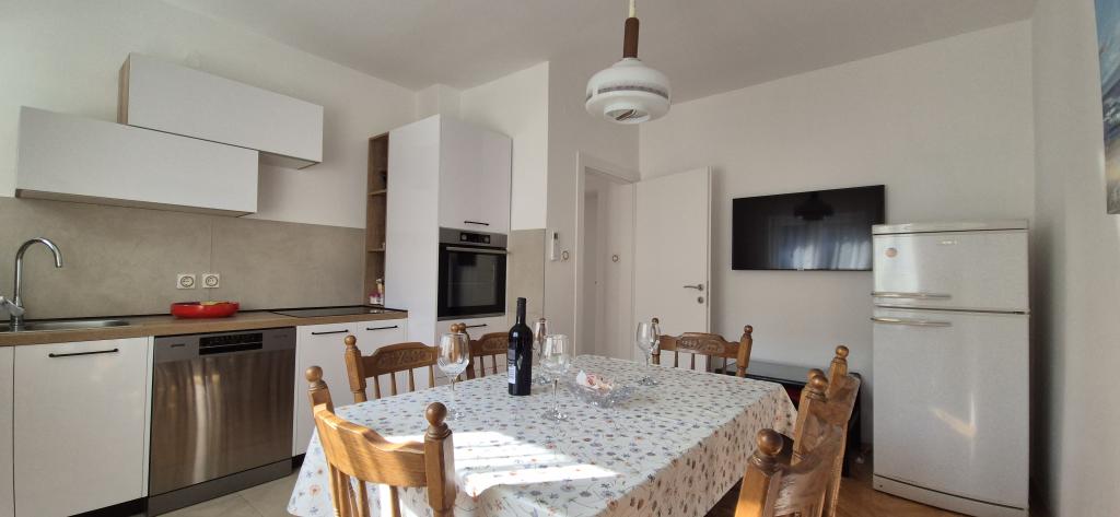 Tasa turistica está incluida en el precio.Un gran lugar para relajarse, el apartamento está limpio y tiene todo lo necesario para funcionar, el propietario, Darko, es agradable y amigable, cuida a sus huéspedes, incluso si existe la barrera del idioma. Se baja hasta la playa, pero lamentablemente el regreso es cuesta arriba. Es una lástima que el estacionamiento al lado del apartamento no tenga techo, porque el auto es como una sartén, y también sería bueno tener seguridad en las escaleras (una puerta) para que los niños o los animales puedan pasar. No bajes (ni te caigas) sin la supervisión de un adulto (pero eso es un detalle). No hay cargos adicionales por mascotas, lo que hace que el apartamento sea aún más atractivo. En general, recomiendo este apartamento.