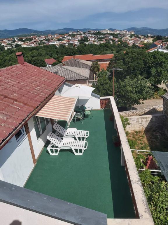 Apartamentos Dora están situados cerca del centro de Novi Vinodolski. La casa familiar consta de una planta baja y un primer piso donde viven los propietarios. Un apartamento. *** para 2 personas con posibilidad de 2 camas supletorias se encuentra en el segundo piso. La gran terraza del apartamento ofrece una hermosa vista panorámica del mar y la isla de Krk. En el patio hay una plaza de aparcamiento para los huéspedes del apartamento.