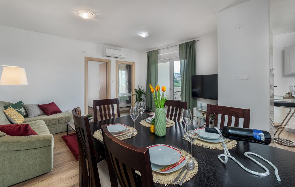 Bienvenido a un cómodo apartamento (65 m² - 1.ª planta), completamente equipado y moderno, ubicado en la zona más tranquila y mejor valorada de la ciudad (Kalvarija - Panos 30). El alojamiento se encuentra a 5-7 minutos a pie (300 m) de la primera playa (Bribirska obala), Marina Novi, tiendas (Lidl) y restaurantes, y a 10 minutos a pie del centro. Este apartamento con aire acondicionado cuenta con 2 dormitorios, un amplio salón, 2 balcones con hermosas vistas al puerto deportivo y a la ciudad, una cocina totalmente equipada y un baño con todos los electrodomésticos y artículos de cocina e higiene necesarios. El Apartamento Sanja tiene 3 estrellas y dispone de aparcamiento privado gratuito, así como wifi gratis en todo el establecimiento. El Castillo de Trsat está a 40 km y el Aeropuerto de Rijeka (Krk) a 30 km. Si busca relajación total, paz y tranquilidad, el Apartamento Sanja es la opción ideal.