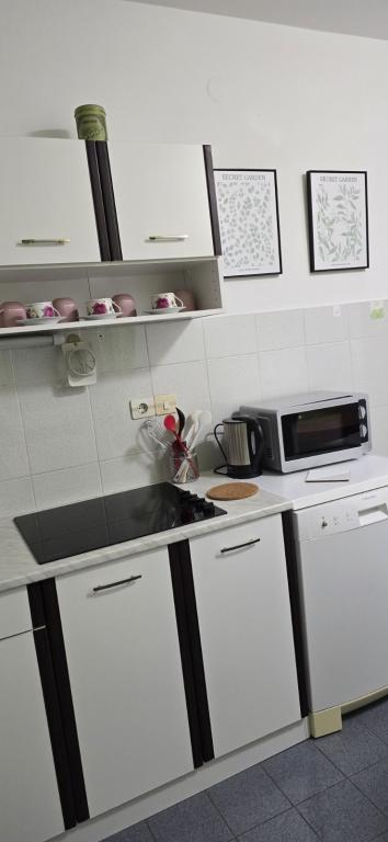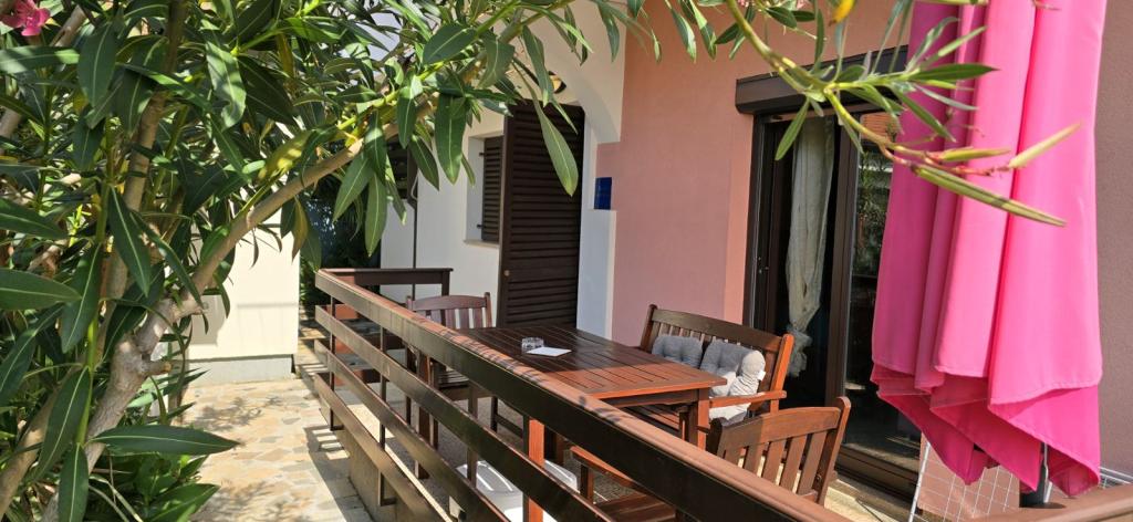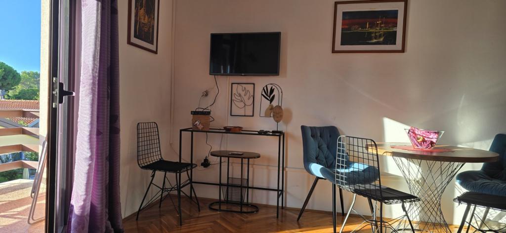 Situada en las inmediaciones de la playa, la casa Marina se apoya en un bosque de pinos y en un largo y pintoresco paseo marítimo con vistas al infinito azul del mar. Conduce en una dirección a playas tranquilas y calas escondidas y en la otra a través del Puerto Deportivo hasta el mismo centro de la ciudad. A lo largo del paseo existen restaurantes, cafeterías, un parque infantil, canchas deportivas, canchas de tenis, un campo de minigolf, un gimnasio al aire libre y una eco plaza con bandera verde. El olor a pinos, a mar y a sal aportan a todo el ambiente una atmósfera agradable y especial. House Marina es el lugar perfecto para unas vacaciones tranquilas, pero también para una estancia activa en la naturaleza si lo desea. El interior de la casa está diseñado de tal manera que combina el estilo clásico y moderno. Se trata de maximizar el confort del dormitorio y otros espacios. Los apartamentos son cómodos y están equipados con electrodomésticos modernos. Cada apartamento tiene una amplia terraza donde los huéspedes pueden relajarse. En el patio de la casa hay área de parrilla y estacionamiento. Se tarda un minuto a pie hasta la playa y 10 minutos hasta el centro de la ciudad, por el paseo marítimo.