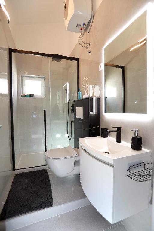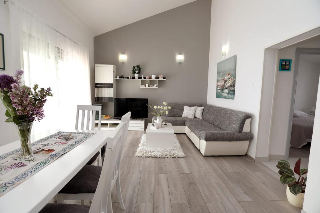 El apartamento Katija está situado en Okrug Gornji, a solo 30 metros de la orilla del mar. Nuestro apartamento ofrece una combinación perfecta de tranquilidad, comodidad y una vista encantadora de numerosas islas dálmatas. Es un destino ideal para familias, parejas y todos aquellos que buscan relajarse en un entorno natural, lejos de las multitudes, pero cerca de todos los servicios necesarios. Disfrute de su café de la mañana o del atardecer en su terraza privada, donde le espera una vista impresionante. A sólo 5 minutos a pie se encuentra una playa bien cuidada, adecuada para niños, con aguas poco profundas y sombra natural, ideal para unas vacaciones familiares. Características principales del apartamento: proximidad al mar, terraza con bonitas vistas, cocina totalmente equipada con comedor y sala de estar, dos habitaciones con camas dobles, baño con ducha y artículos de aseo básicos, wifi gratuito, aire acondicionado, TV, estacionamiento gratuito. Ya sea que esté planeando unas vacaciones activas o simplemente quiera disfrutar del sol y el mar, nuestro apartamento en el distrito de Gornji ofrece todo lo que necesita para una estancia inolvidable.