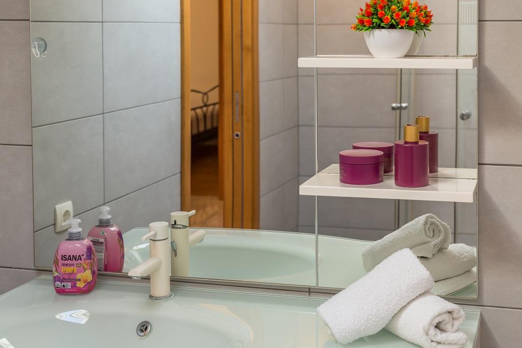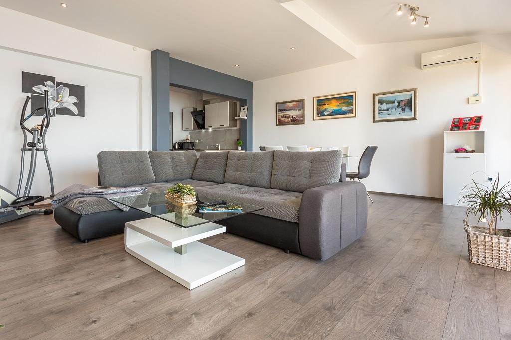 APARTAMENTO NUEVO Y MODERNO. El apartamento está ubicado en una casa familiar privada con vista al mar, islas y playas locales. Cerca del centro de Omiš, a solo 500 m. Todo es nuevo. El apartamento tiene 95 m2. Dispone de 3 dormitorios, salón, cocina con comedor, aseo y baño adicional, balcón y plaza de aparcamiento en garaje. Habitaciones: Una habitación tiene una cama grande (180 x 190) para 2 personas. La segunda habitación tiene una cama francesa (160 x 190) para 2 personas. La tercera habitación tiene una cama individual (90 x 190) para 1 persona. Cuarto de baño con lavabo y ducha. WC con lavabo y lavadora. La cocina está totalmente equipada. El salón es espacioso. Amplio balcón con asientos.