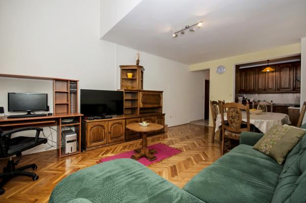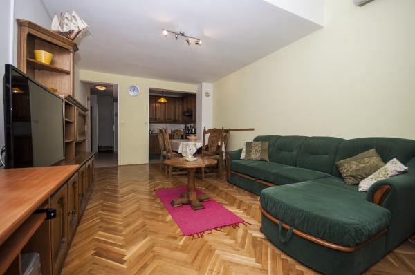 Apartamento totalmente amueblado se encuentra en Omis, en el edificio, en el 3er piso. El apartamento está en dos plantas, la planta baja tiene una sala de estar, cocina, cuarto de baño grande, un pequeño aseo y una habitación grande con una cama doble. Un pequeño balcón es en esta planta. En la segunda planta hay un baño y dos dormitorios. El apartamento cuenta con tres aire acondicionado, wi-fi, TV, lavadora, lavavajillas, cafetera eléctrica, microondas.