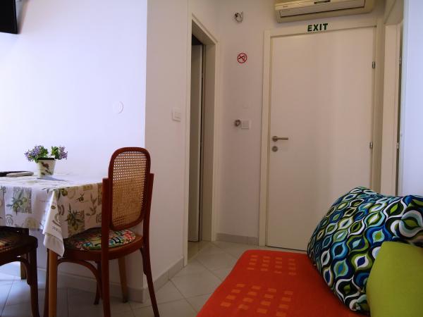 Dos apartamentos Bobbi están ubicados en el segundo piso de un edificio renovado en el mismo centro de Omiš, rodeado de vegetación, a sólo 20 m del centro antiguo de la ciudad y a 50 m de la playa principal de la ciudad (a 5 minutos a pie). En los alrededores hay numerosas cafeterías, restaurantes, puntos de partida para diversas excursiones (rafting, paseos en barco por el río Cetina, tirolesa, lugares de interés histórico, parque de atracciones infantil, etc.). Los apartamentos fueron construidos en 2015, con aire acondicionado, cama doble para dos personas, dormitorio independiente, cómodo sofá para dos personas más (dimensiones 160x200) o una persona (dimensiones 140x200) en el salón, ropa de cama, toallas, cocina con placa eléctrica ( 2 platos), frigorífico con congelador, hervidor de agua, todos los accesorios, vajilla para preparar y servir alimentos, mesa para 3 y 4 personas, TV, satélite, internet wi-fi. Un apartamento tiene dos balcones y el otro no tiene balcones. Sólo se permite fumar en los balcones.