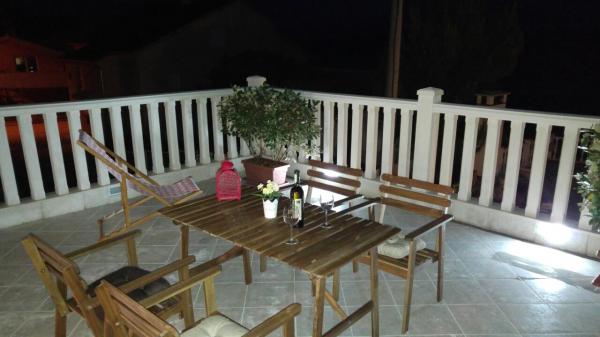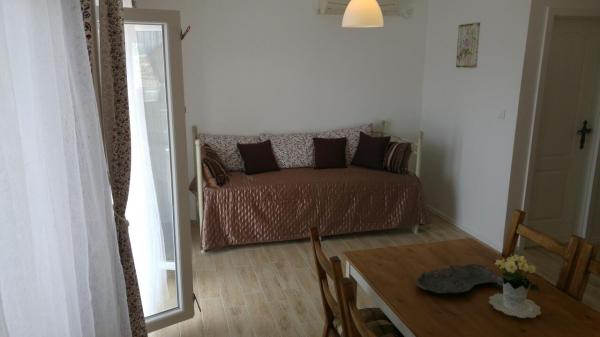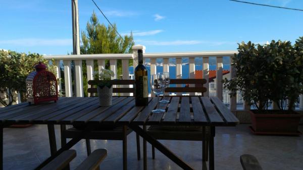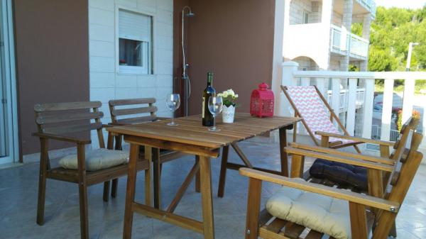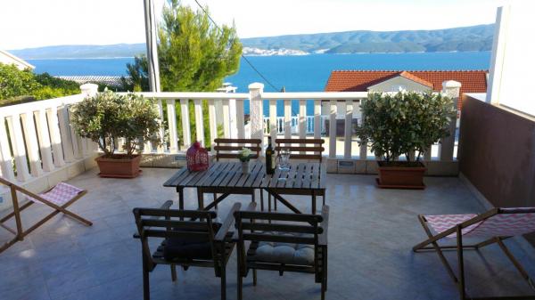 El apartamento está situado en un lugar tranquilo. . El apartamento no es de nueva construcción y muy bien amueblada. consta de cc45m2 la sala de estar y una hermosa terraza cc35m2 con una vista del mar y las islas. . de distancia del mar 900m cc. . también de Omis cc 5 kilometros