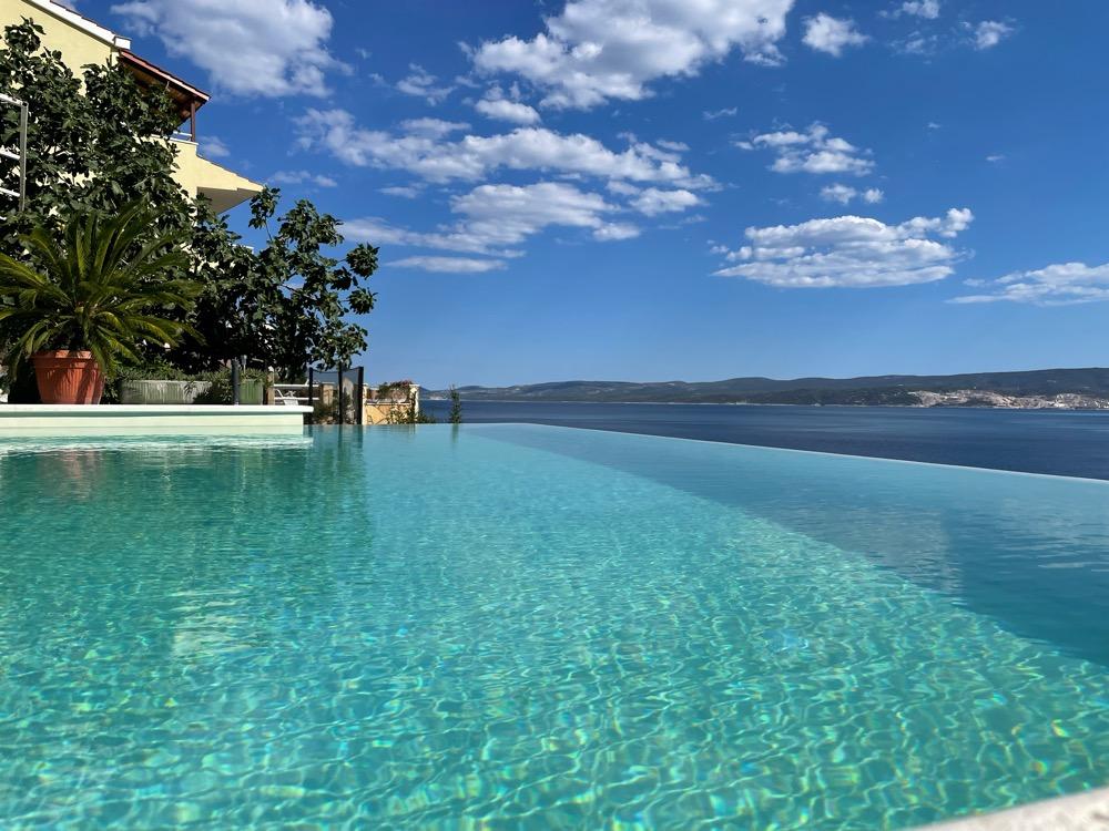 Recomiendo de todo corazón los apartamentos. Estuvimos allí a mediados de julio de este año. El apartamento exactamente como en las fotos. Todo como en la descripción. La cocina está bien equipada. Un juego de toallas, plancha y secador de pelo. Maravillosa terraza con vistas al mar. La piscina está limpia y la vista desde ella es increíble. Vimos delfines nadando dos veces por la noche. Se lo recomiendo a familias con niños. Los propietarios alquilan solo 2 apartamentos, por lo que la piscina nunca estuvo llena. Se podría decir que la piscina era casi sólo para nosotros. Ubicación alejada del ruido de la ciudad. Restaurante y tienda a unos 400m. Hay un descenso privado a la playa a través de unas escaleras bastante empinadas, pero el encanto de Croacia es tal que hay escaleras por todas partes. El propietario proporciona una zona de playa privada con tumbonas. Sin embargo, utilizamos la playa un poco más lejos a pie, porque los niños preferían los guijarros más pequeños. Muy cerca de Omis y no lejos de Split. Los dueños son muy amables. Nosotros recomendamos. Definitivamente regresaremos algún día.
