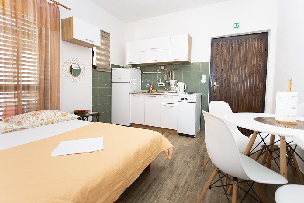 Si necesitas un lugar para relajarte lejos del bullicio, lo recomendamos sin reservas. Las condiciones son exactamente como se describen, están limpias y los dueños son muy amables. Las escaleras a la playa son empinadas, pero gracias a ellas puedes mejorar tu condición física. Es mejor ir a las tiendas y restaurantes en coche; no hay aceras para pasear tranquilamente, pero eso es lo que Croacia tiene. Un lugar típico para pasarla lejos de todo lo que perturbe la paz.