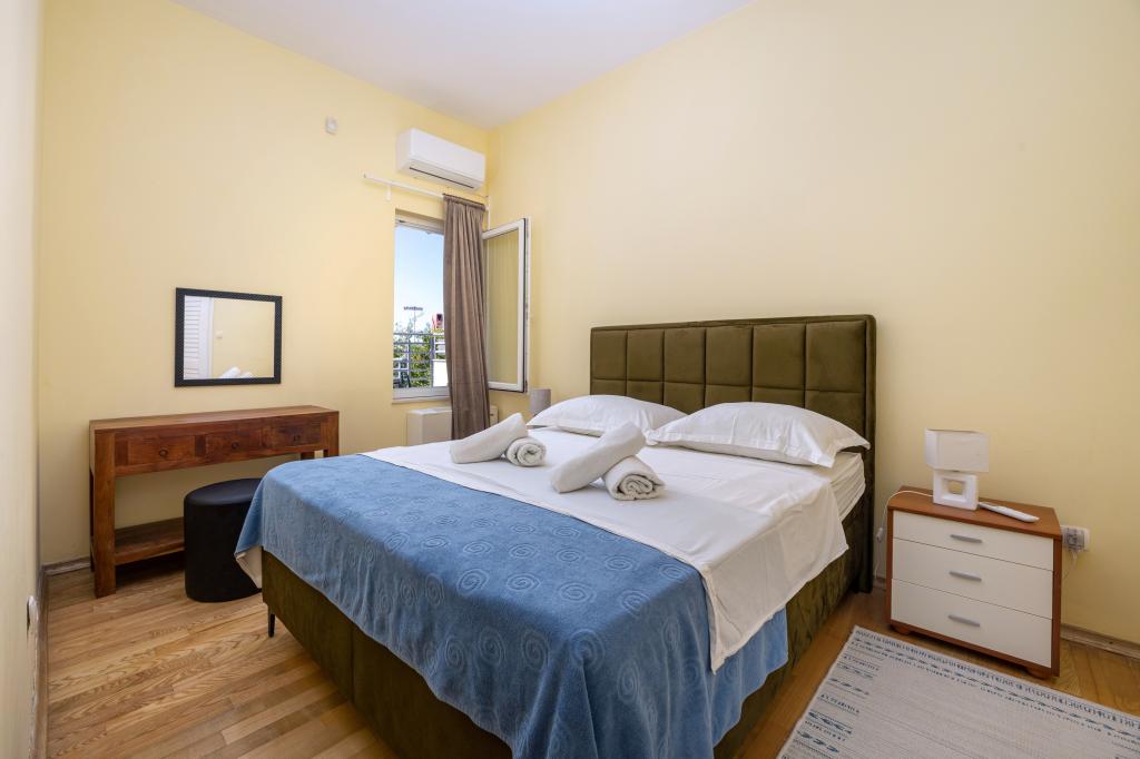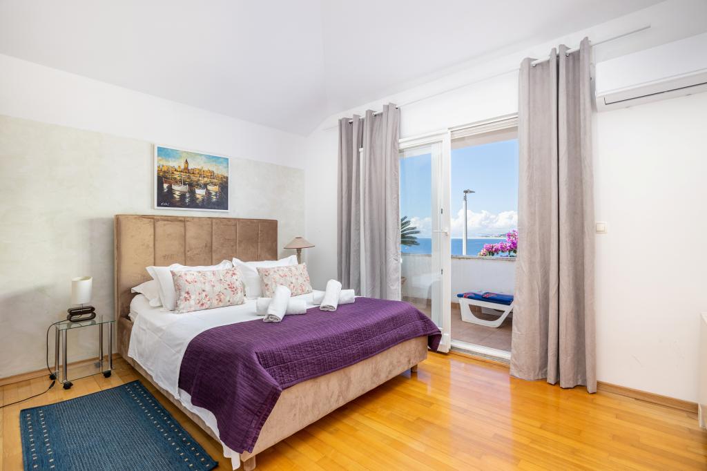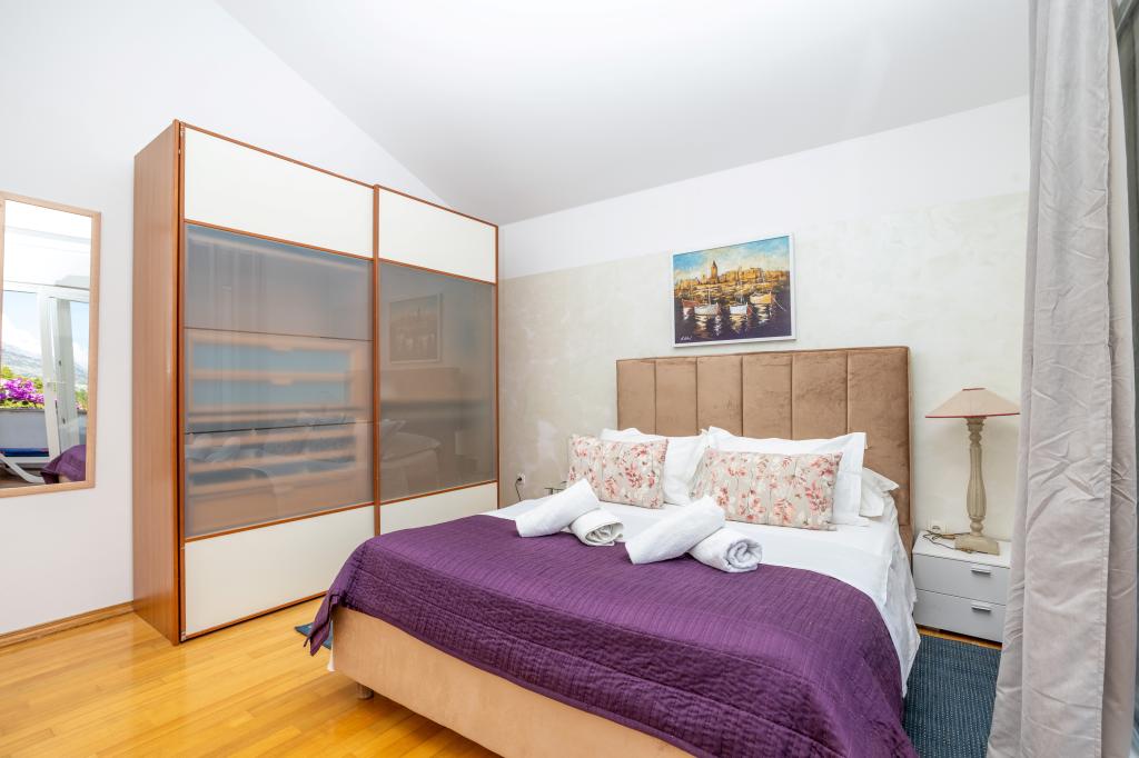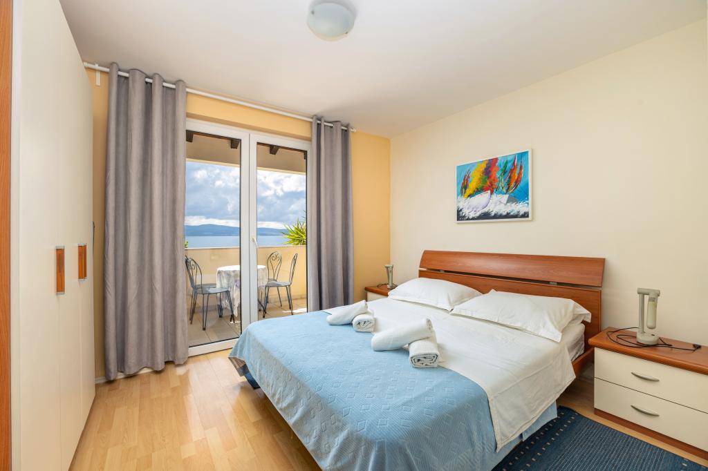 Alojamiento en apartamentos de nueva construcción, extremadamente cómodos y magníficamente equipados. El complejo se encuentra a 3 km del centro de Omiš. Un total de ocho apartamentos, ubicados en primera línea de mar. Todos los apartamentos cuentan con amplias terrazas con vistas al mar y a la isla de Brač. Hay plazas de aparcamiento justo al lado de la villa. Los apartamentos se encuentran a 300 metros de la carretera principal, junto al mar y a una gran playa de guijarros. Hay cuatro tipos de apartamentos: tipo 2+2 con una habitación doble independiente y un salón con dos camas; tipo 2+2 con un amplio estudio; tipo 4+2 con dos habitaciones dobles y un amplio salón con dos camas nido; y tipo 4+2 con un amplio apartamento de lujo. Apartamento tipo 14+2, en realidad una villa de tres plantas con una superficie de 300 m², con piscina climatizada de 9x4 metros, siete habitaciones dobles, dos amplios salones con balcones y terrazas, cuatro baños, aseo independiente, barbacoa exterior, sauna y gimnasio, etc. La piscina es de uso exclusivo del apartamento A 14+2. Los demás apartamentos no.