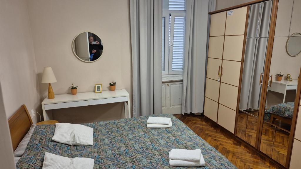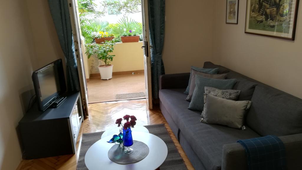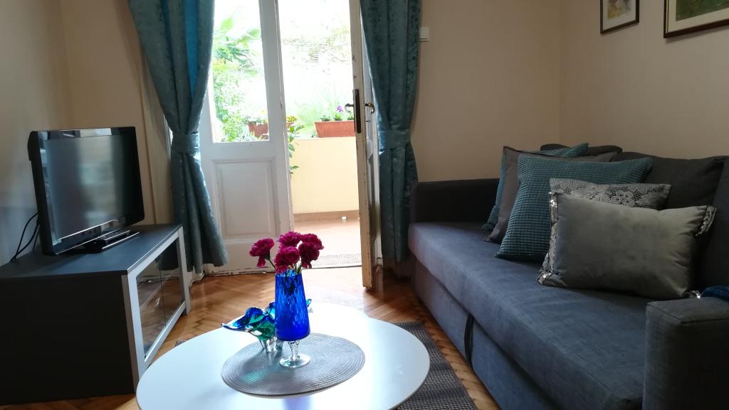 Encantador apartamento en una antigua villa en el centro de Opatija. El apartamento está a 300 metros del mar y la playa. Es muy espacioso, con una superficie de 58 metros cuadrados. Cuenta con un balcón cubierto con vistas al mar y, al otro lado de la casa, una salida al jardín donde también se puede disfrutar de una mesa y sillas. El apartamento es uno de los pocos en el centro de Opatija que dispone de aparcamiento privado gratuito. El mercado de Opatija está a 400 metros y el supermercado Spar a 150 metros. El apartamento tiene capacidad para un máximo de 5 personas. El dormitorio cuenta con una cama doble grande y una cama individual. En el salón hay un sofá cama. La cocina es amplia y está totalmente equipada.
