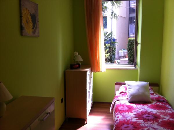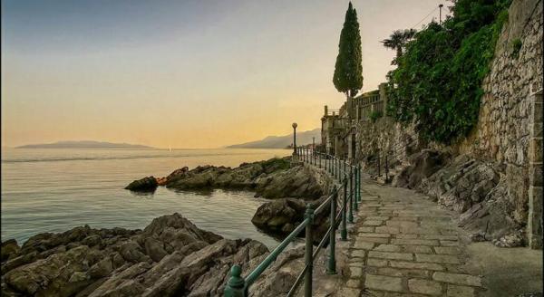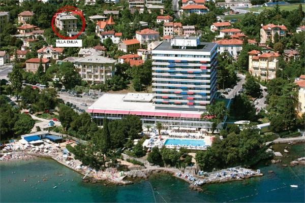 Buenos días, queridos huéspedes. Ofrecemos apartamentos con mobiliario de lujo, situado en el centro de Opatija, a sólo 200 metros del mar. El apartamento está situado en la planta baja de Villa Emilia. Apto para los niños discapacitados y los jóvenes. 200 metros de playa de los niños. En frente de la casa hay un jardín donde hay muebles de jardín. El apartamento está equipado con: estufa, nevera con congelador, lavavajillas, microondas, cafetera, aire acondicionado, lavadora. Capacidad: 4 personas, con dos habitaciones separadas.