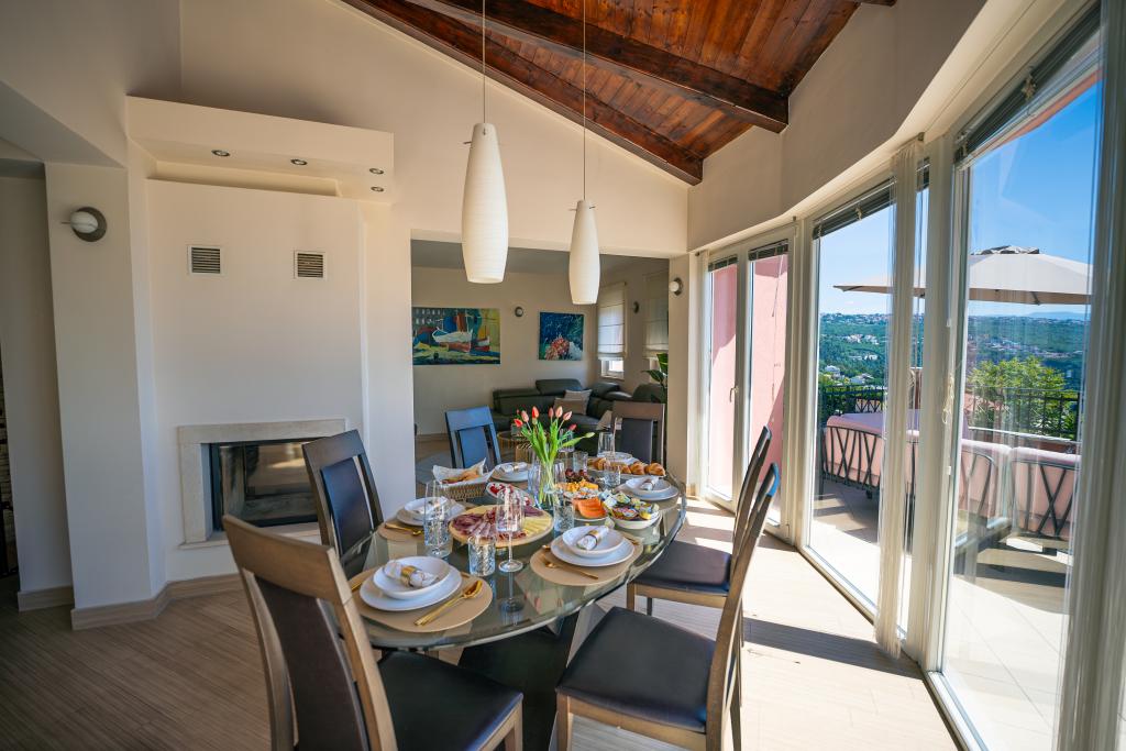 Una pequeña joya hermosa y moderna ubicada en la Riviera de Opatija. La casa fue construida recientemente, por lo que todo está casi como nuevo. El diseño interior es muy bonito y fue diseñado por mi esposa Alexandra, diseñadora de interiores. Una de las cosas más sorprendentes de esta casa es la vista de 180 grados desde la terraza de la bahía de Kvarner, la costa de Istria y las islas de Krk y Cres. Puramente impresionante. Una fotografía no puede transmitir la belleza de la vista. Los amaneceres y atardeceres son especiales, y las cenas en la terraza son algunos de los momentos más bonitos del día. Dormirás como un bebé porque por las noches es muy tranquilo y agradable y por la noche llega una ligera brisa del mar. Todas las habitaciones tienen aire acondicionado. También es importante mencionar las camas súper cómodas en todas las habitaciones, y el jacuzzi y ducha interior y exterior en la terraza con una hermosa vista. La Riviera de Opatija es conocida por su clima micromediterráneo. Las ciudades de la Riviera se extienden desde el pueblo pesquero de Volosko, que se encuentra a sólo unos minutos a pie de la casa, hasta la hermosa Opatija, a la que se puede llegar a pie. Una de las cosas que debes disfrutar es el paseo marítimo a lo largo del mar Lungomare, que tiene unos 15 km de largo. A lo largo del paseo marítimo se pueden encontrar numerosas pequeñas playas y pequeñas calas donde bañarse, intercaladas con magníficos palacios que datan de la época de Austria-Hungría. La casa está a unos 400 m de varias playas de Volosko. El agua es muy limpia y de color azul turquesa. Muchos lugares de la Riviera están a poca distancia en coche y ofrecen muchas experiencias gastronómicas. Las tiendas de comestibles cercanas tienen una gran selección de alimentos que incluyen excelentes panes, vinos, productos agrícolas y carnes locales. Los mejores restaurantes también están a pocos minutos a pie de la casa. La comida es increíble, especial