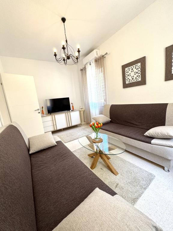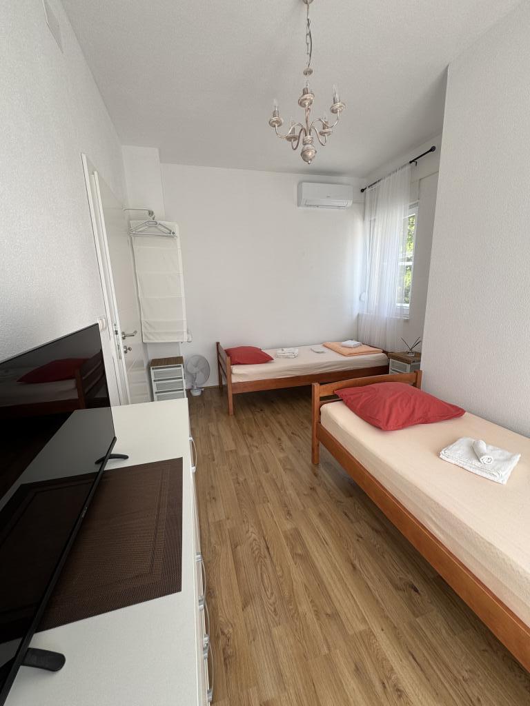 Villa totalmente equipada con piscina y jardín cerca de la playa. Al ser los únicos huéspedes, todas las instalaciones de la villa estarán a su entera disposición. La villa cuenta con entrada independiente, una sala de estar, una cocina con comedor y un aseo en la planta baja, y dos dormitorios con un baño en la primera planta. El dormitorio principal dispone de una cama de muelles de 200x200, y el segundo dormitorio cuenta con dos camas individuales y una cama supletoria para dos personas, además de acceso a la terraza con vistas al mar y a Korčula. La sala de estar dispone de dos sofás cama (2x2). El apartamento cuenta con tres aires acondicionados, dos en la primera planta y uno en la planta baja. En el jardín encontrará mobiliario de exterior, tumbonas, sombrillas, barbacoa, piscina, jacuzzi y una zona de juegos infantil. Además, si vienes en coche, la villa dispone de varias plazas de aparcamiento privadas en la parcela contigua, que también es de su propiedad. Facebook: Villa Sunshine Orebic