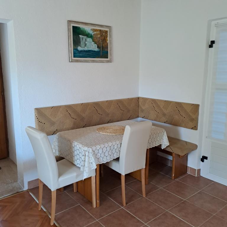 Muy buenos anfitriones. Vistas muy bonitas ... Cerca de playas y konoby. e iglesia Debido a la baja ubicación del apartamento, no necesita aire acondicionado. Un estacionamiento grande y conveniente. La cocina está equipada con todo lo que necesitas. El baño tiene todo lo que necesita e incluso más. Lo recomiendo