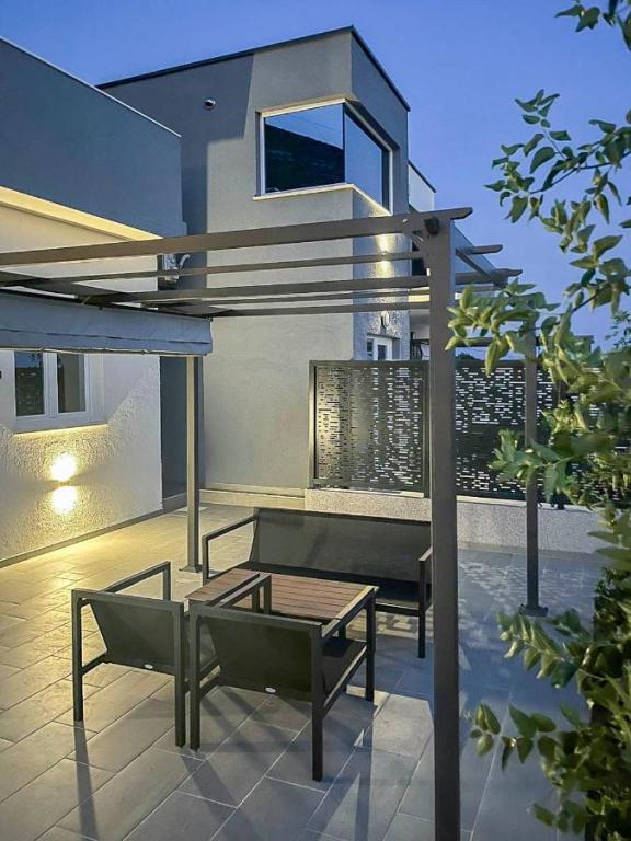 Villa de dos pisos modernamente equipada con una hermosa vista al mar. Está situado en la pequeña localidad de Radešići, a 5 minutos en coche de Orebić. En la planta baja hay 2 dormitorios con aire acondicionado, TV y baño. Delante hay una amplia terraza con sillones y una ducha al aire libre. En el primer piso hay una cocina, comedor y sala de estar con aire acondicionado (concepto de espacio abierto), un baño y un balcón con vistas a Korčula y al canal Pelješka. Los huéspedes disponen de una plaza de aparcamiento gratuita.