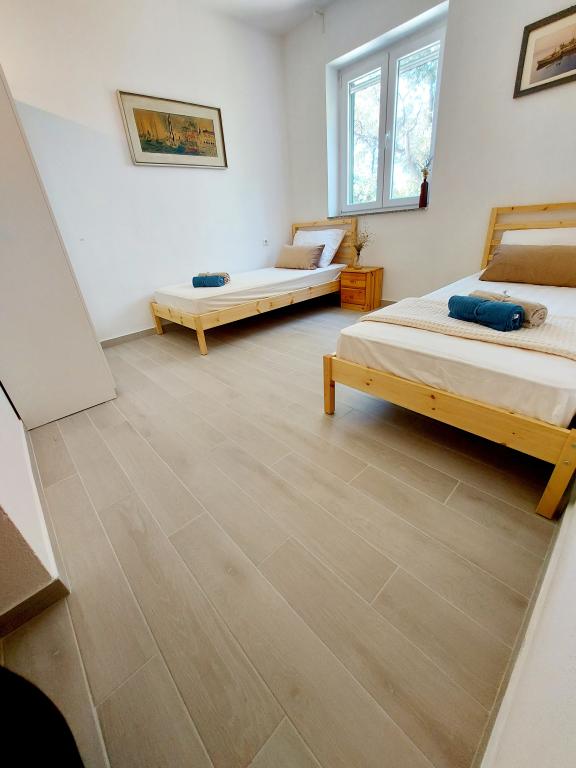 Mandre, un pueblo turístico y pesquero en la isla de Pag, está situado en el lado sur de la isla con una hermosa vista de Silba y Olib y los islotes de Maun y Škrda, que están llenos de calas y hermosas playas. Nuestra casa está ubicada en primera fila del mar, al lado de la playa de piedras y guijarros, ¡solo necesitas salir del patio, cruzar la playa y nadar en el mar cristalino! Los apartamentos están totalmente equipados y rodeados por un amplio patio con sombra natural. El aparcamiento gratuito se encuentra justo enfrente del apartamento. Este es un gran lugar para que las familias con niños se relajen y para los amantes de la naturaleza. Mandre tiene una costa dentada, con un paseo marítimo de 3 kilómetros de largo y playas de guijarros, está a 14 km de Novalja y Zrć, a 16 km de la ciudad de Pag y a unos 60 km de la histórica ciudad de Zadar. Con una hermosa puesta de sol, el olor a sal y el sonido del mar, ven y disfruta de nuestro lugar. En el amplio patio es posible guardar bicicletas y tablas de SUP para remar.