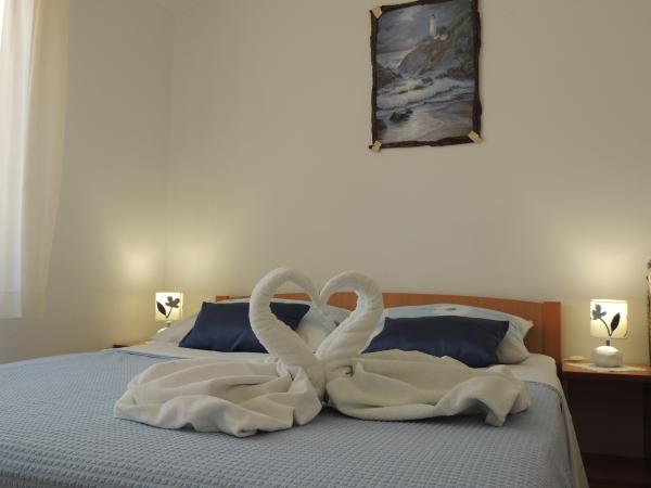 El apartamento está en una excelente ubicación a poca distancia. Usted obtiene una multa de estacionamiento para el automóvil. La habitación estaba limpia y bien equipada con aire acondicionado, era un gran armario, una cama cómoda. Lo mejor, sin embargo, es la dueña Marija, una esposa muy buena y cálida que dirige su pensión con amor y entusiasmo. Ella habla buen alemán, y siempre está ahí para preguntas Fuimos recibidos calurosamente con schnapps de agua de tarta de café y recibimos un bonito regalo de despedida. Simplemente super. También el restaurante asociado es el mejor personal superior de la comida. Gracias Susanna Uwe Tyson