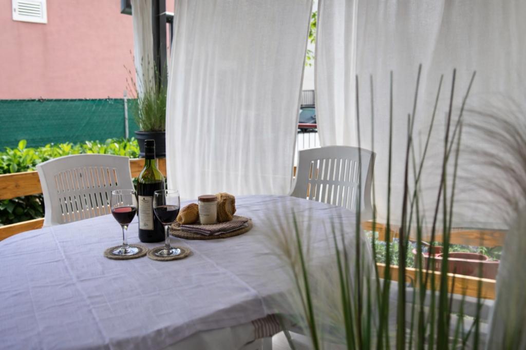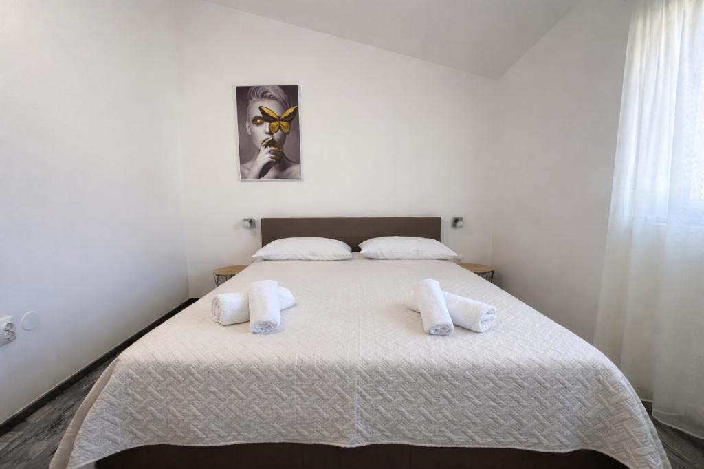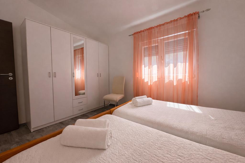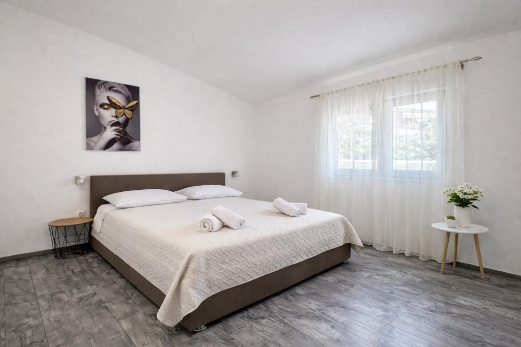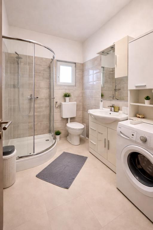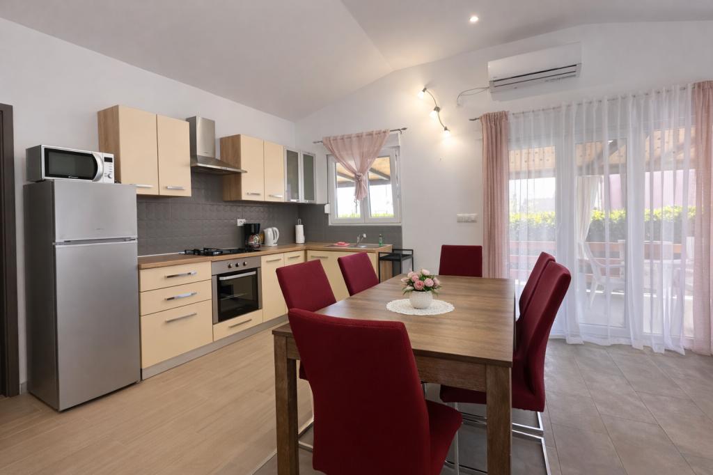 El alojamiento tiene capacidad para 5 personas y cuenta con dos dormitorios con camas dobles (160x200) y una cama supletoria para un niño de hasta 12 años en el salón. Los huéspedes tienen acceso a ropa de cama y toallas, un baño con ducha y lavadora, un acogedor salón con TV y una cocina totalmente equipada (nevera, cocina, horno, lavavajillas, hervidor y vajilla). La terraza cubierta es ideal para tomar un café por la mañana o relajarse, y los huéspedes tienen acceso a una plaza de aparcamiento privada. El patio está vallado. El alojamiento se encuentra a 800-900 m de la playa más cercana, mientras que la tienda y la panadería están a solo 100 m. Se puede acceder fácilmente al alojamiento desde la salida de la autopista cerca de Pakoštane, a unos 15 minutos en coche. ¡Bienvenidos! :) ¡Utilicen el formulario de contacto para cualquier pregunta! ¡GRACIAS! :) ¡La lista de precios para la temporada 2026 ha sido actualizada!