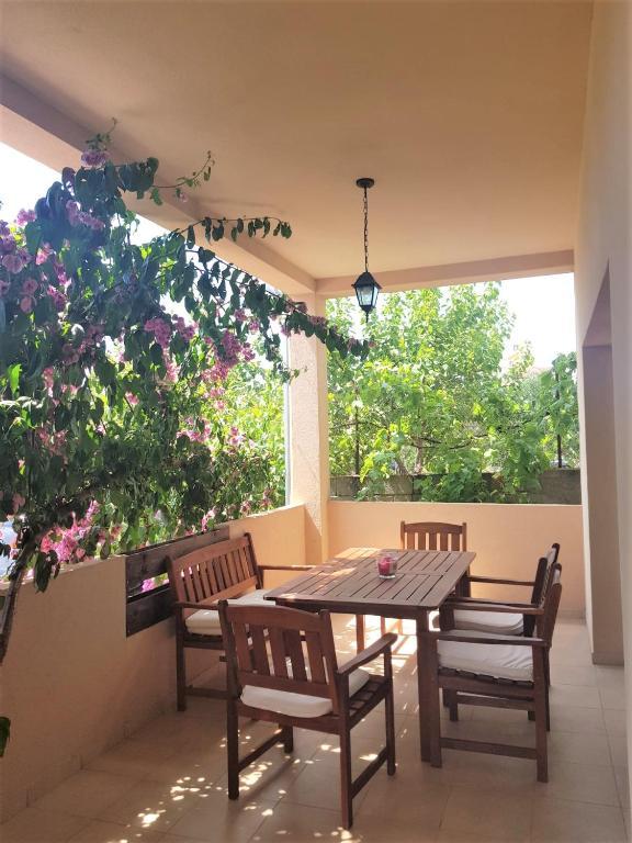 La terraza cubierta ofrece espacio suficiente para reuniones familiares y para el relax diario. Hay una plaza de aparcamiento privado en el patio de la casa, disponible para los huéspedes sin coste adicional.