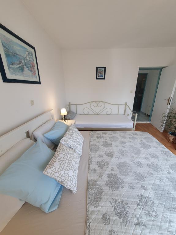 Fantásticas vacaciones Alojamiento muy agradable y bueno, una gran terraza con una mesa y sillas y una tumbona, donde podría utilizarse el toldo, habitaciones equipadas con aire acondicionado. La ubicación del alojamiento estaba bien marcada, la casa tiene una gran plaza de aparcamiento para 4 coches. El equipamiento de la habitación estaba de acuerdo con las fotos en Internet, también enviamos varias fotos nuevas del propietario con nuevos equipos de sala (estudios). El estudio es ideal para una familia con 2 niños, hay una cama completa para 2 personas. El mobiliario con otros muebles es bueno, el equipo de cocina está equipado con electrodomésticos y el mobiliario está exactamente de acuerdo con las fotos, los platos son suficientes para una familia de 4 miembros, hay todo lo que necesita. Cerca de la casa hay una panadería y una variedad de ventas de frutas y verduras. Muy buenos propietarios, amable y servicial, muy buen acuerdo. Un corto paseo a la playa. Por la tarde y por la noche. Nos gustaron nuestras vacaciones, lo recomendamos. También hemos alquilado otros estudios, 2 + 2 y 3 + 1, incluso estos estaban bien, en el estudio 3 + 1 hay una sala de estar perfectamente cubierta (pérgola) para un problema de aproximadamente 10 personas sentadas. A pocos pasos de la casa (a unos 200 m) comienza el centro de la ciudad con buenos restaurantes y tiendas. Las playas son pedregosas: grava pequeña y hormigón.