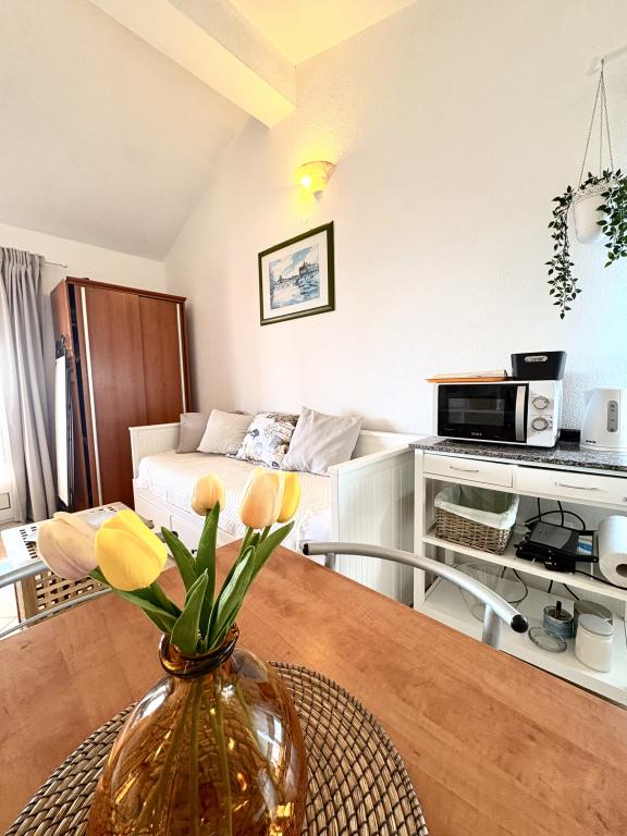 Tasa turistica está incluida en el precio. Documento de confirmación de reserva previa reservaApartamento limpio y ordenado, muy cerca de la playa y del centro, anfitriona amable y acogedora. ¡Todo un aplauso! Espero verte el año que viene.