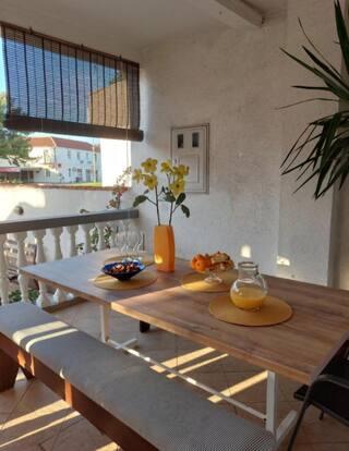 Apartamento recién decorado, cómodo y acogedor. Está ubicado en la planta baja de la casa familiar. Tiene dos salidas, una es al patio donde hay un huerto, que puedes utilizar libremente, también hay una barbacoa con todo lo necesario. La instalación se encuentra a 3 minutos a pie del mar y del centro de la ciudad. Hay una tienda y una cafetería cerca del edificio. El apartamento tiene un dormitorio, un baño, un gran salón con sofá cama, una mesa grande en el interior y una mesa más pequeña para sentarse fuera. Las toallas y la ropa de cama están incluidas en el precio. Cocina magníficamente equipada, tostadora, cafetera, hervidor, todo lo necesario para cocinar y todos los platos necesarios para asar, la parrilla está en el patio. El aparcamiento es gratuito y está situado dentro del edificio. Proporcionamos toda la demás información a su solicitud.