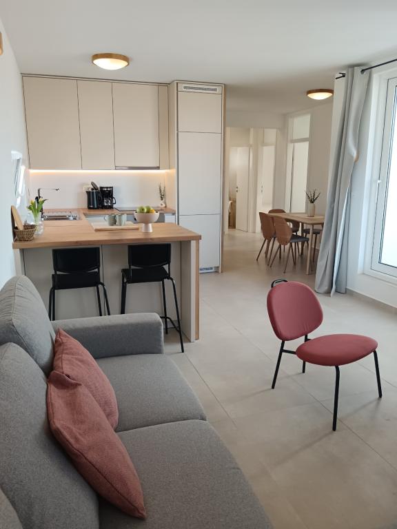 Hemos estado allí durante 9 días, al final de agosto y principios de septiembre de 2016 y que tenía muy buen momento. El alojamiento estaba limpio, muy agradable, confortable, con todas las necesidades necesarias. La cocina estaba bien equipada. El apartamento tiene un grande, agradable terraza - balcón accesible desde la cocina y desde la habitación también. Hemos estado allí con dos niños, de 3 años y 9 meses de edad del bebé y que realmente me encantó este lugar. Playa está muy cerca, incluso mejor con dos niños pequeños. El centro de la ciudad está cerca, también algunas tiendas de comestibles y restaurantes. Gracias por grandes vacaciones, estaremos encantados de visitar de nuevo.