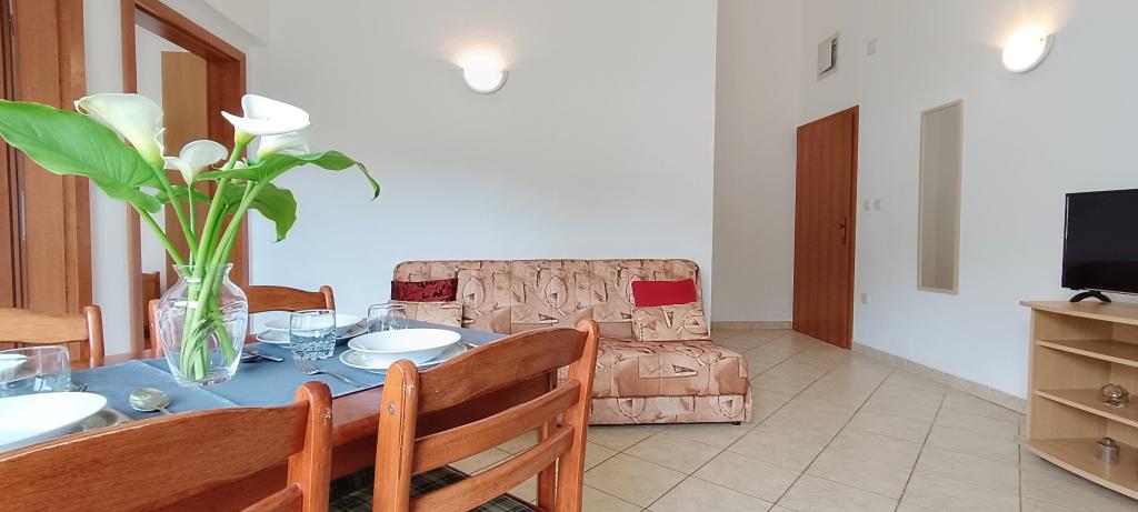 Apartamentos modernamente equipados en la zona turística de Pakoštan. Los apartamentos están situados a 5-10 minutos a pie de las playas y del centro de la ciudad. Cerca del departamento hay supermercado y canchas deportivas.La propiedad está ubicada en un terreno de 1600 m2 con patio parquizado y estacionamientos y asador para huéspedes. Todos los apartamentos disponen de ropa de cama y toallas para los huéspedes. La cocina está equipada con todo el equipamiento de cocina necesario. Hay una tabla de planchar en el salón principal. Tasa turística, aire acondicionado y WiFi están incluidos en el precio. Las mascotas son bienvenidas. El precio para mascotas es de 5 Eur/Día. Entrada a partir de las 14:00 horas. Salida antes de las 10 am.