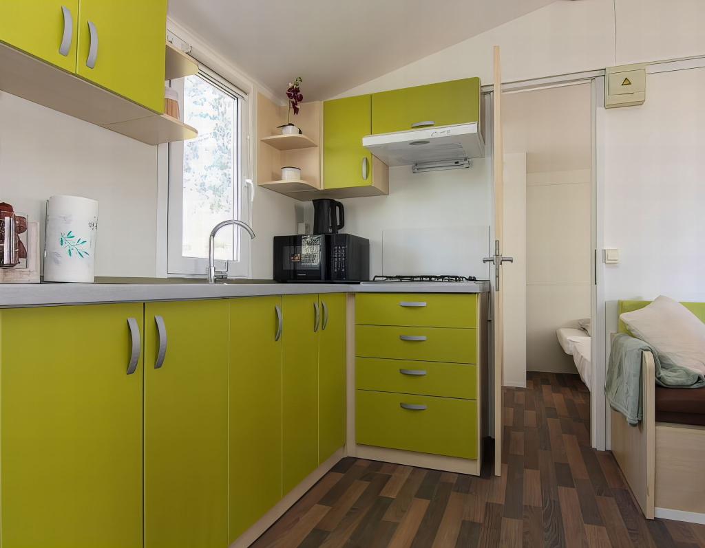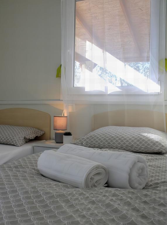 La casa móvil de 32 m2 está situada en una zona tranquila de Pakoštane, a 7-8 minutos a pie del centro de la ciudad y a unos 10 minutos de la playa. La casa está decorada modernamente y totalmente equipada con 2 dormitorios, cada habitación tiene su propio baño con ducha / WC, cocina y sala de estar. La casa también dispone de aire acondicionado y calefacción. Una terraza de madera de 24m2 con un sofá anexo y una mesa con 6 asientos adecuada para comer al aire libre. La casa móvil dispone de aire acondicionado, TV e internet, ropa de cama, toallas, vajilla, microondas, hervidor de agua y cafetera y mosquiteras en las ventanas. Jacuzzi climatizado con tumbonas y ducha exterior. Se proporciona plaza de aparcamiento en un aparcamiento privado. Cuna y trona disponibles bajo petición. Barbacoa disponible.