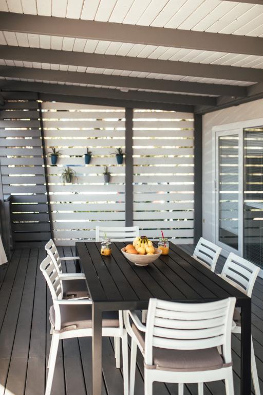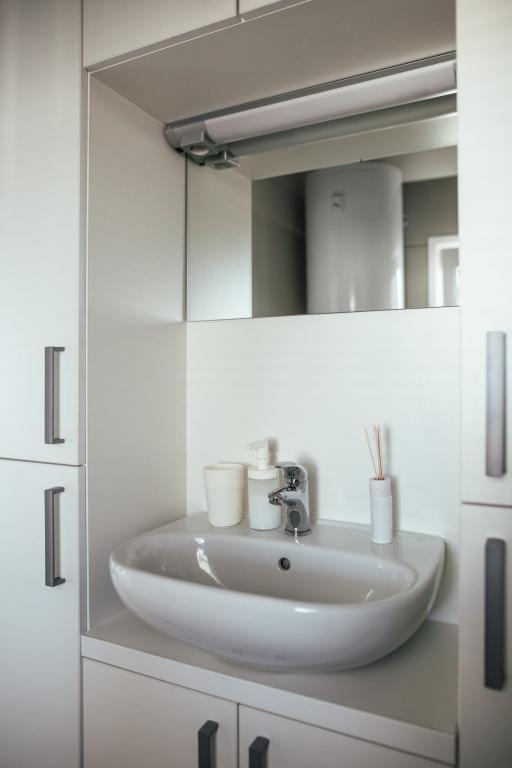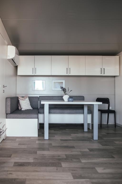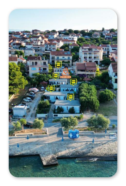 Casas móviles ubicadas en el centro de Pakoštane, justo al lado de la playa principal de arena con vistas directas al mar. Cada casa móvil cuenta con dos dormitorios, comedor, cocina, baño y una amplia terraza (5). Todos los huéspedes tienen acceso a una barbacoa. Se proporciona una plaza de aparcamiento. Se admiten mascotas con un cargo adicional de 7 € por noche. Disponemos de amarre propio y aparcamiento para remolques, disponibles para los huéspedes por un suplemento.