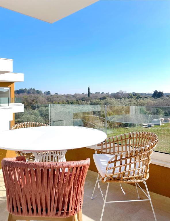 Apartamentos modernos en un edificio nuevo, ubicado en una calle tranquila. Ambos apartamentos se encuentran en la segunda planta de un edificio de dos plantas. Constan de cocina con comedor y sala de estar, baño y dormitorio, y están completamente amueblados y equipados para una estancia agradable. Cada apartamento tiene una terraza cubierta con mesa y sillas. Desde la terraza de ambos apartamentos se puede contemplar el mar y la vista se extiende hasta Brijuni, mientras que desde la terraza del apartamento verde también se pueden ver olivares. El apartamento azul da a la calle y el verde al patio. Los apartamentos se encuentran a 5-10 minutos a pie del centro de Peroj, donde se encuentra la iglesia, y junto a ella hay una panadería, una frutería y una pequeña tienda. Todos los miércoles de verano, se vende pescado fresco en la plaza. La playa de Martuline está a unos 20 minutos a pie o a 3 minutos en coche. El aparcamiento en la costa es gratuito. A sólo 2 km se encuentra Fažana, desde donde sale un barco hacia Brijuni, y hay cafés, restaurantes y otras instalaciones de entretenimiento.