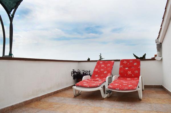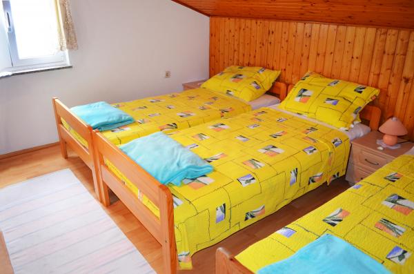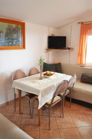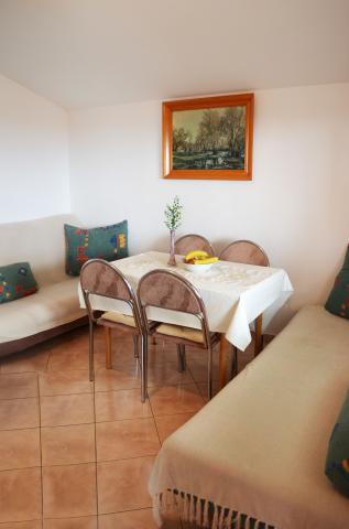 El entorno de paz y tranquilidad, lejos de las instalaciones (restaurantes, tiendas y playas). En la playa hay que conducir un coche (3-4 min.), Caminar (30 minutos). El apartamento es ideal para familias que buscan privacidad y tranquilidad. Los propietarios son amables, serviciales y muy amable. Apartamento estaba bien equipado adecuadamente para cinco personas con la posibilidad de auto-catering cambio en el uso y lavadora. Activo tiene un balcón con vistas al mar. La instalación es también un aro de baloncesto.