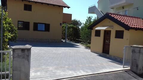 Apartamento moderno para 4+1 personas en una casa de nueva construcción, ubicada en una calle sin salida sin tráfico, un lugar ideal para unas vacaciones. La playa principal y el centro están a solo 10 minutos a pie.